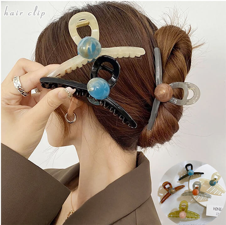 OKBヘアクリップクリア 軽い バンス ジュエリー アクセサリー 通販 アイボリー ブラウン エルムグリーン グレー ブラック