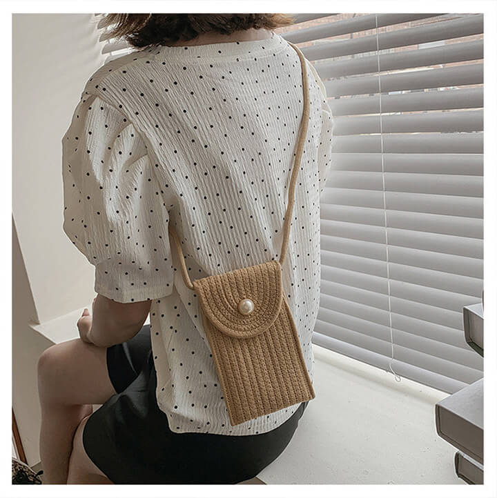 1B12ミニショルダーバッグ 草編みバ バッグ 小物 ブランド雑貨 40%Off 無地ベージュ 無地ブラウン 無地ブラック ベージュ