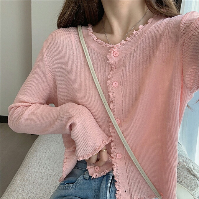 2A31 4カラー フリル カーディガ トップス カーディガン ボレロ お買い得 ホワイト ピンク ブルー ブラック