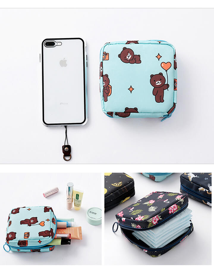 1B7 防水コスメポーチ ナプキン収納 バッグ レディースバッグ 化粧ポーチ 42%Off くま 花 サボテン レモン ユニコーン フラミンゴ