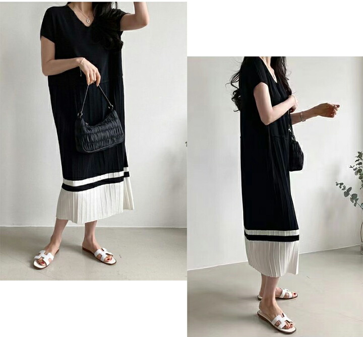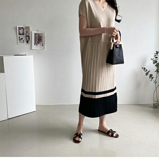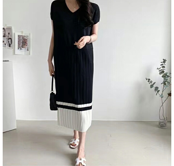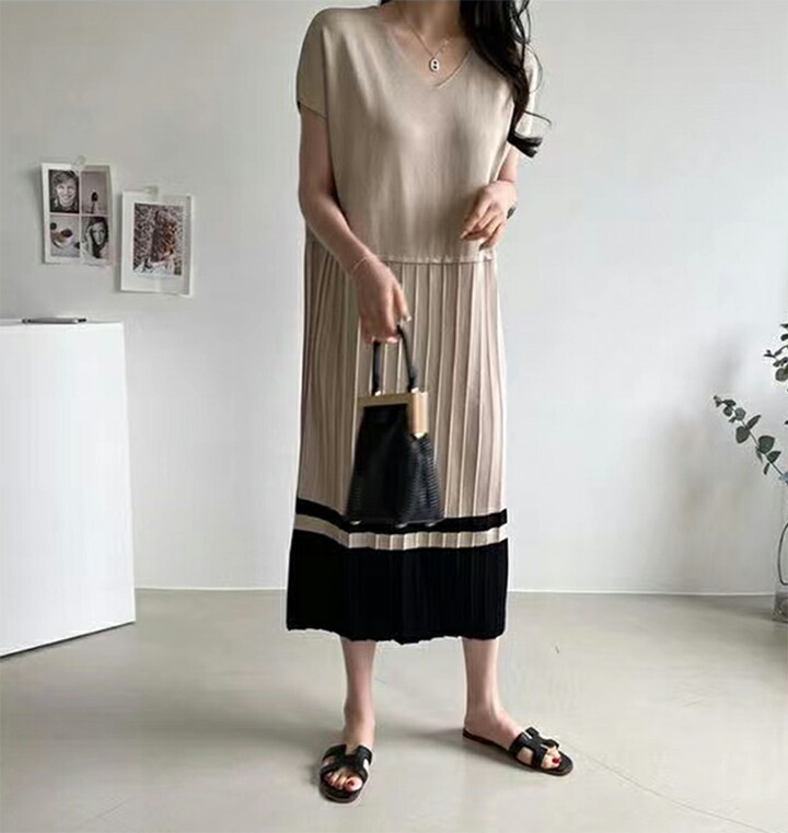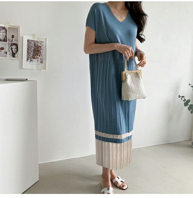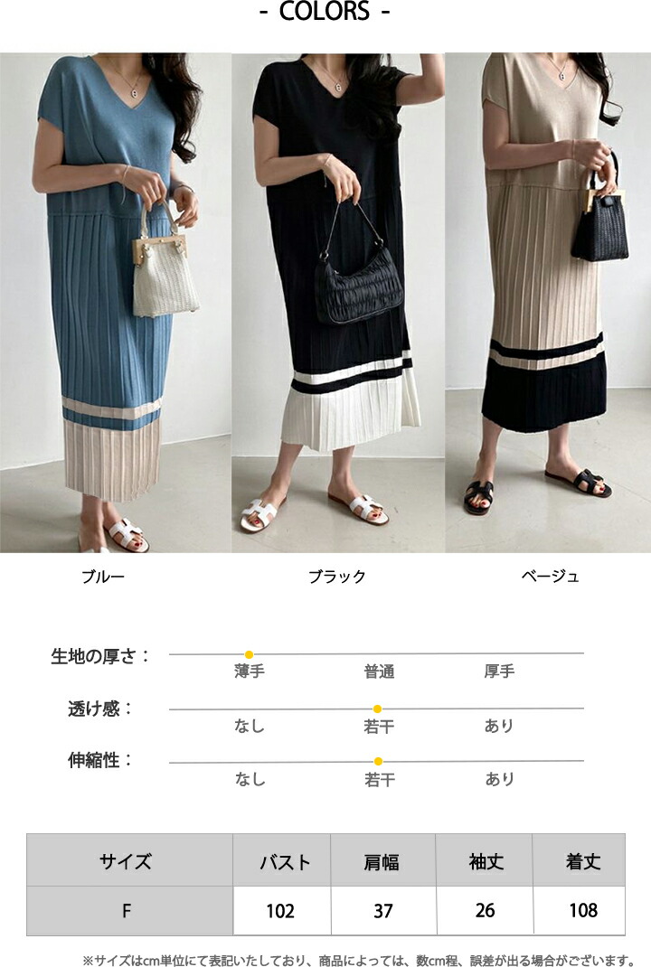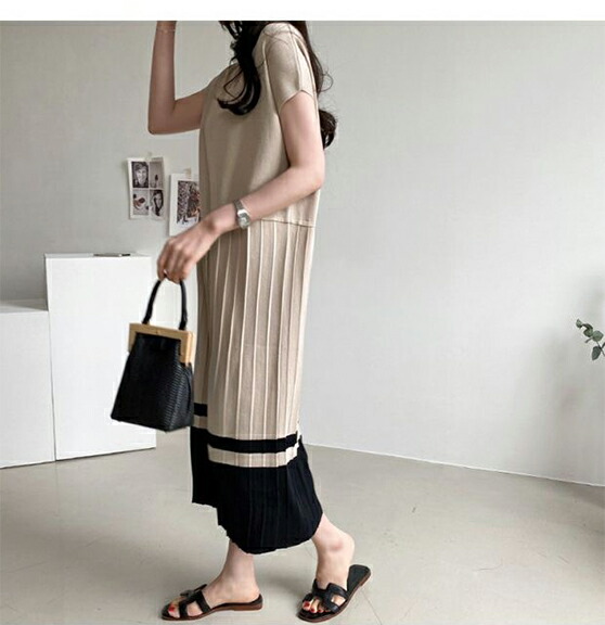 2B24 ニットワンピース 裾 プリー レディースファッション 続々登場 ブルー ベージュ ブラック