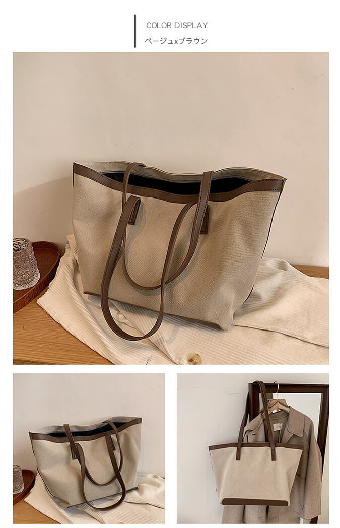 1B11 PUレザーキャンバストートバ バッグ 男女兼用バッグ トートバッグ 豊富な品揃え ブラウン ブラック ベージュxブラウン ベージュxブラック