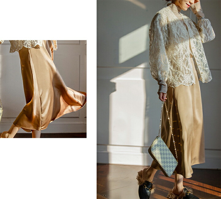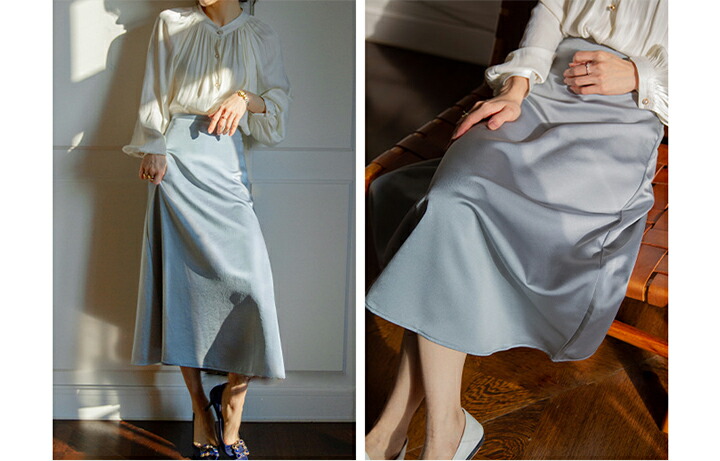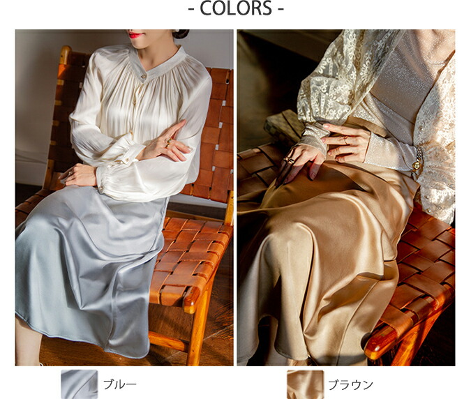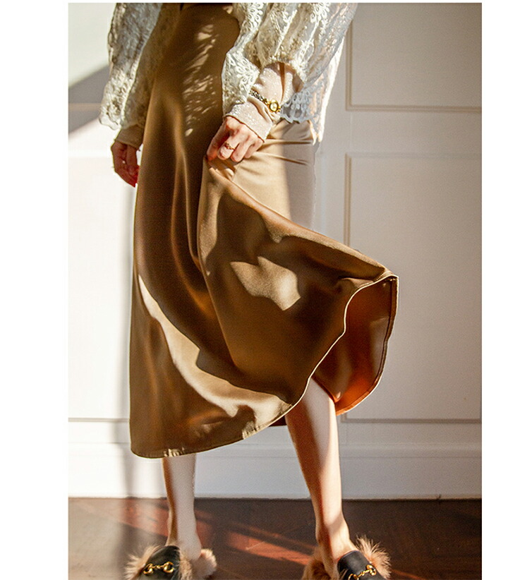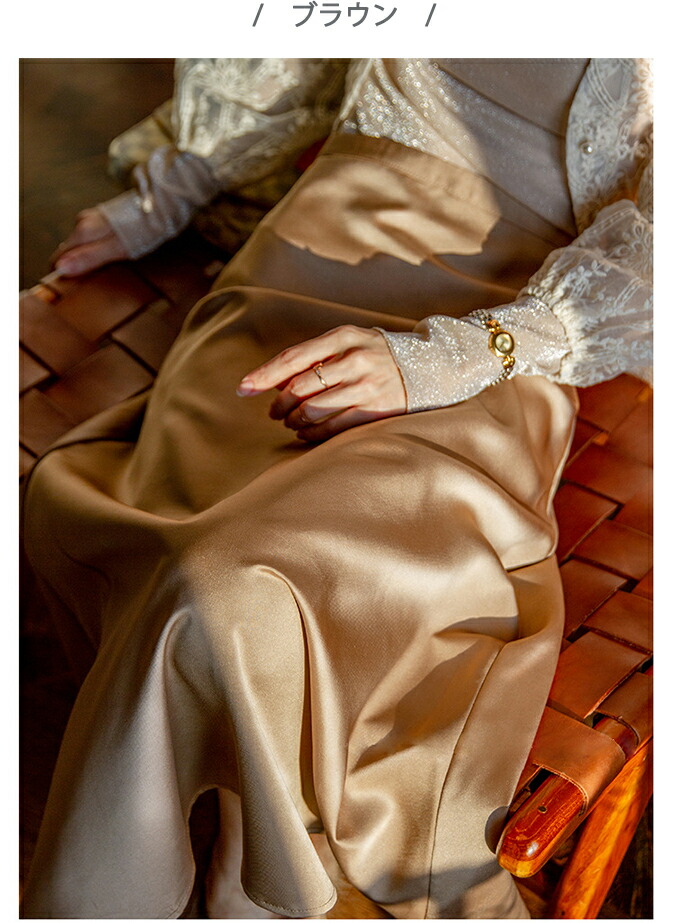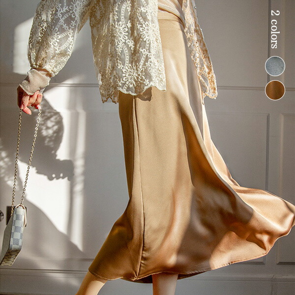 2A5 フレアスカート光沢感 無地 ペ レディースファッション 続々登場 S M L ブルー ブラウン