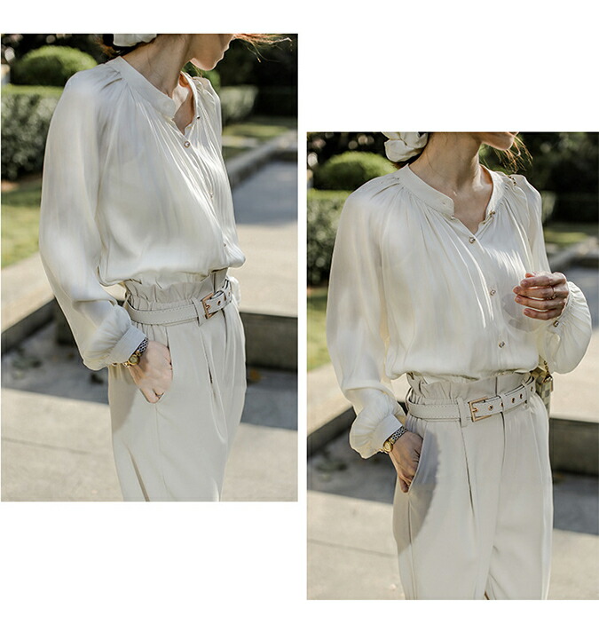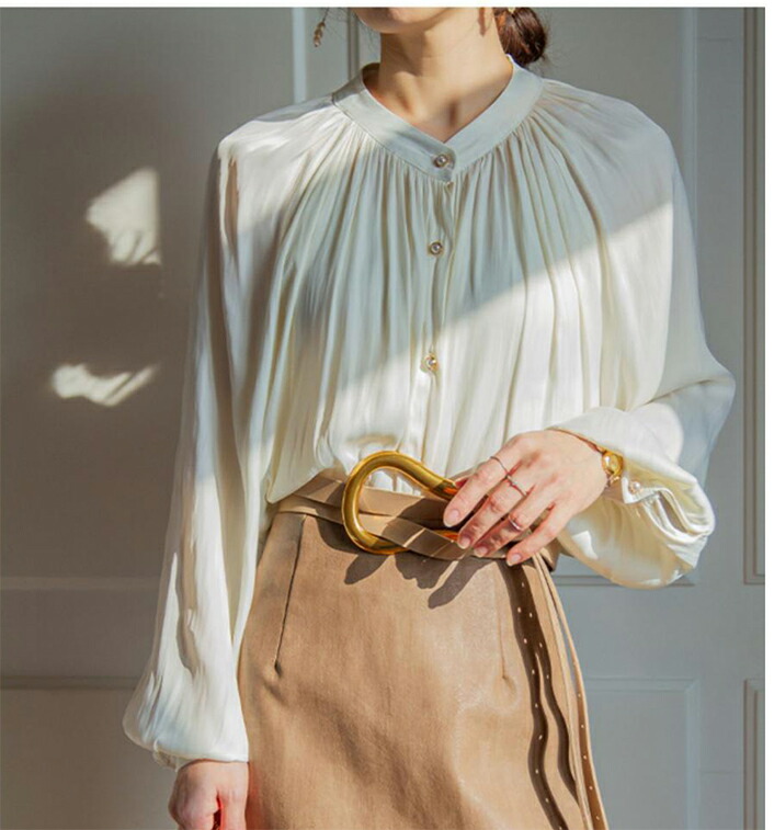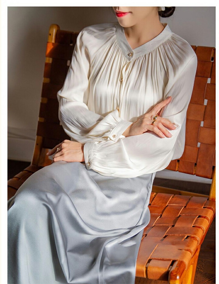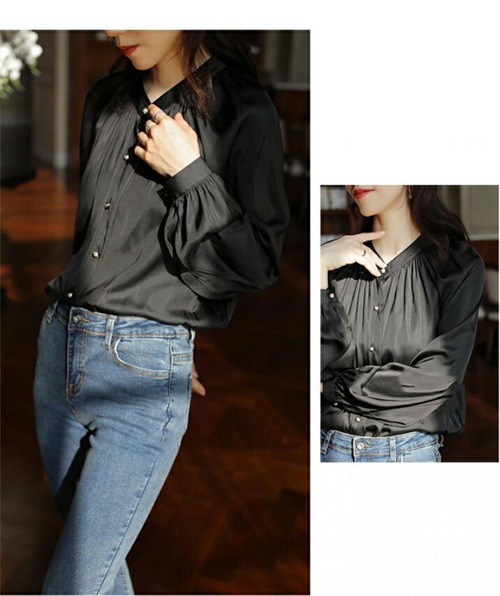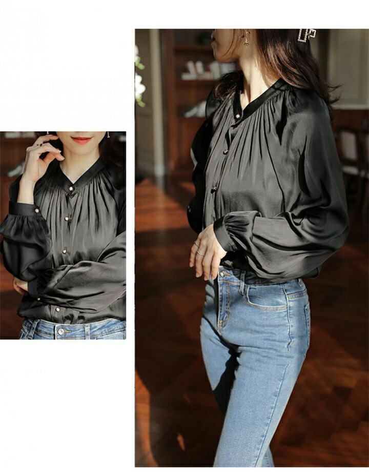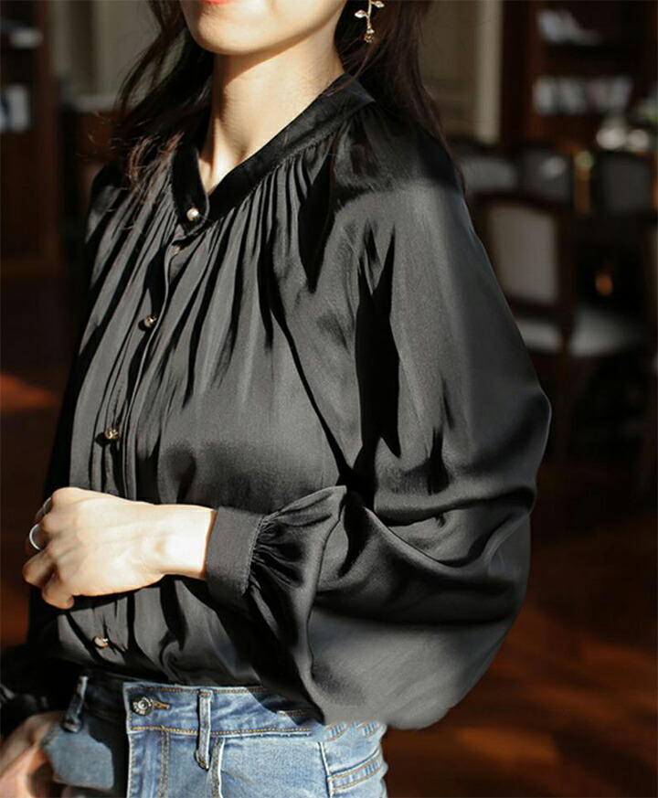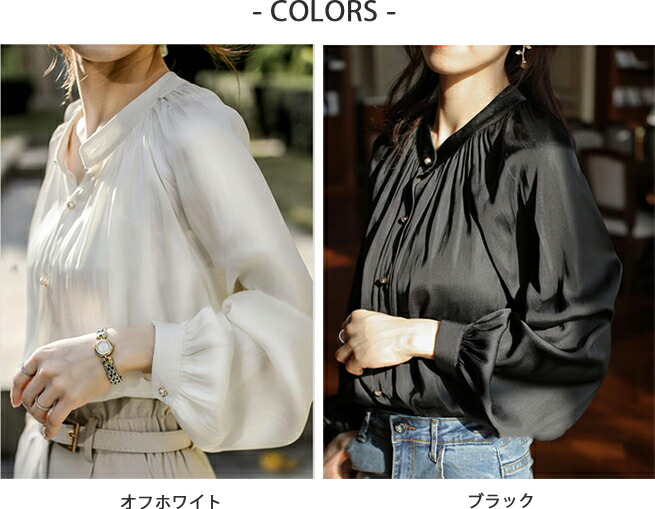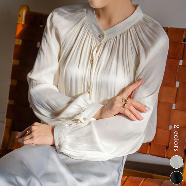 2A3ツヤ 華やか ブラウス トップス トップス シャツ ブラウス 42%Off S M L オフホワイト ブラック