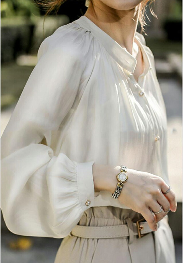 シフォンブラウス シアーブラウス ボリューム袖