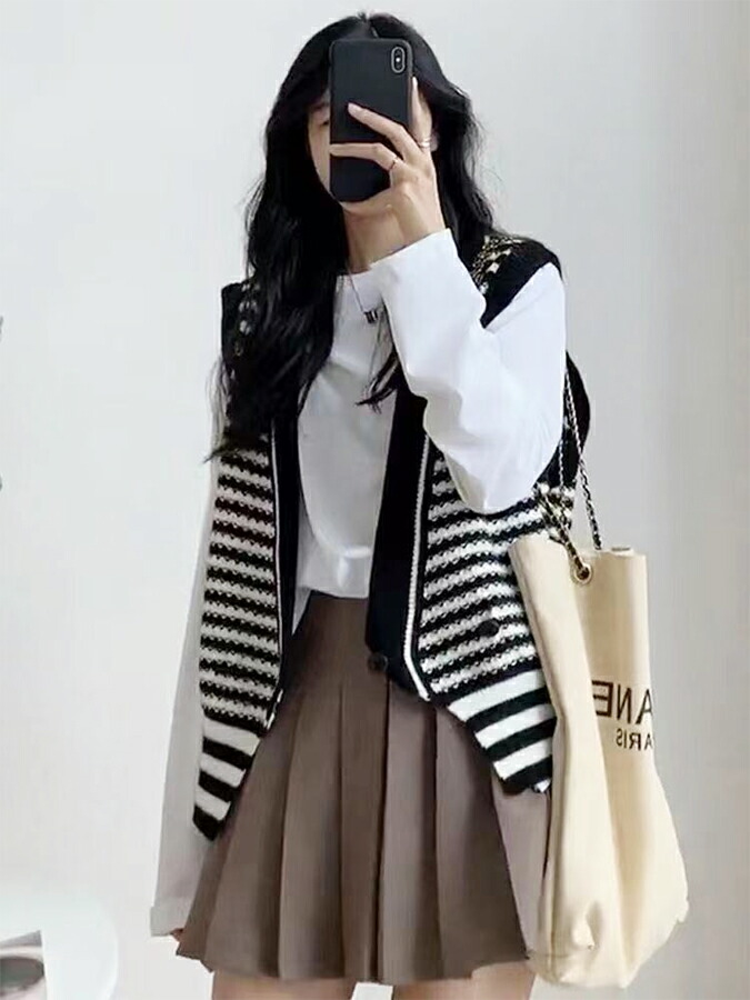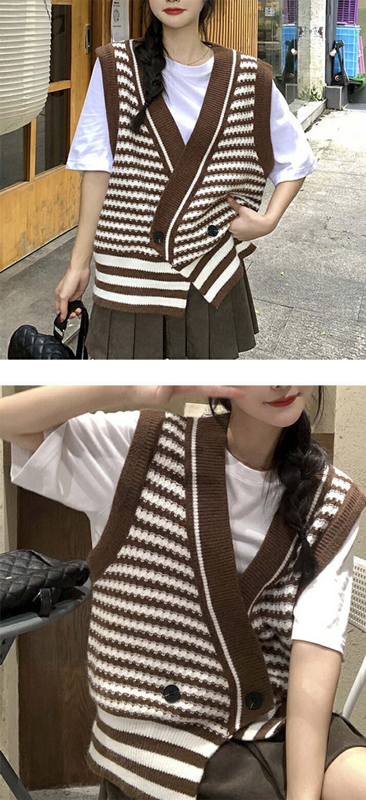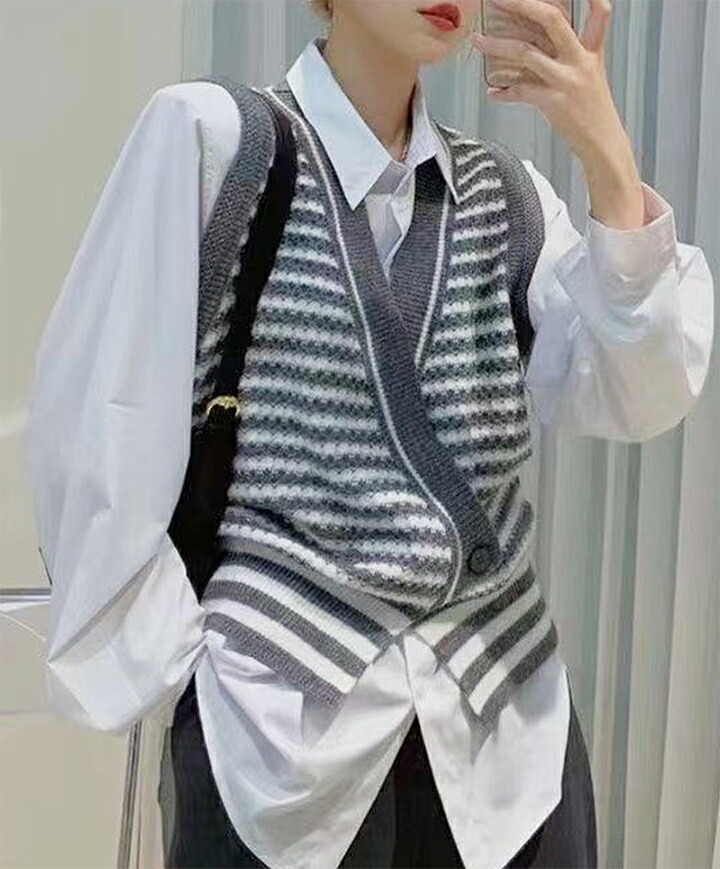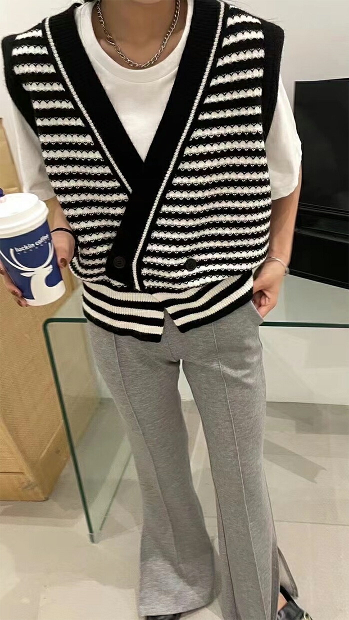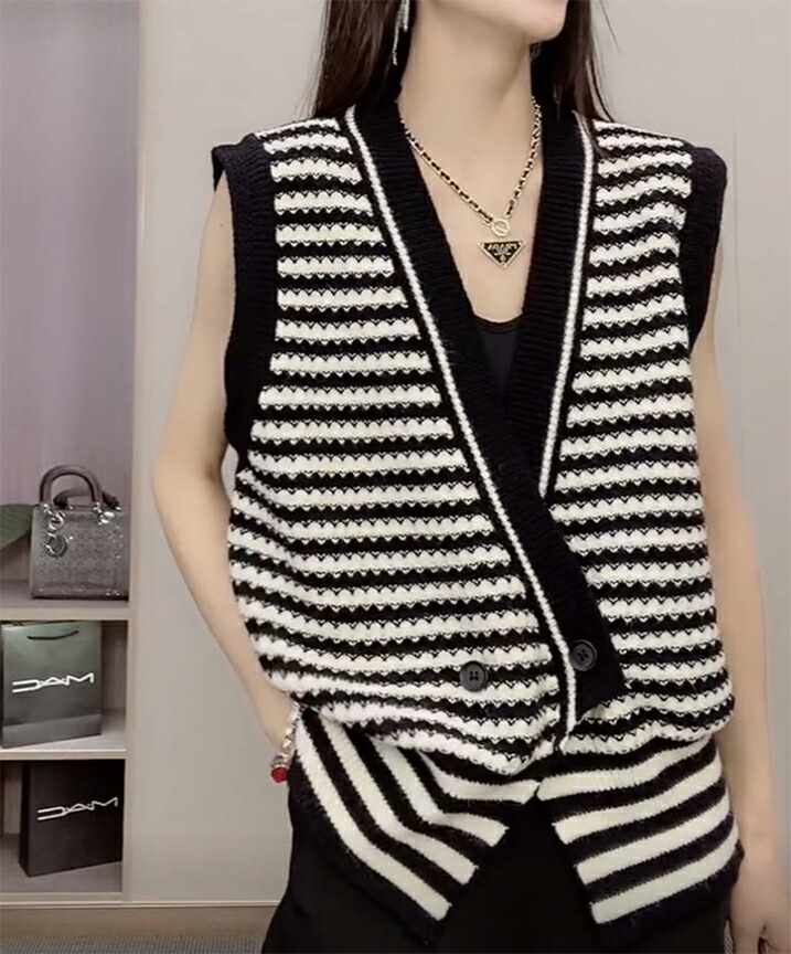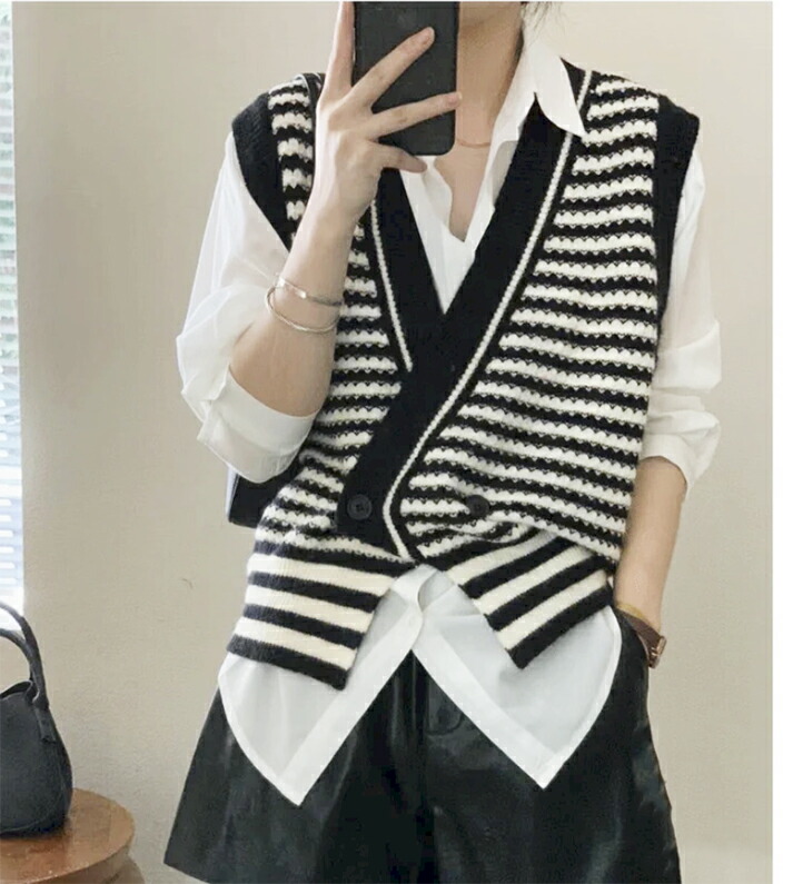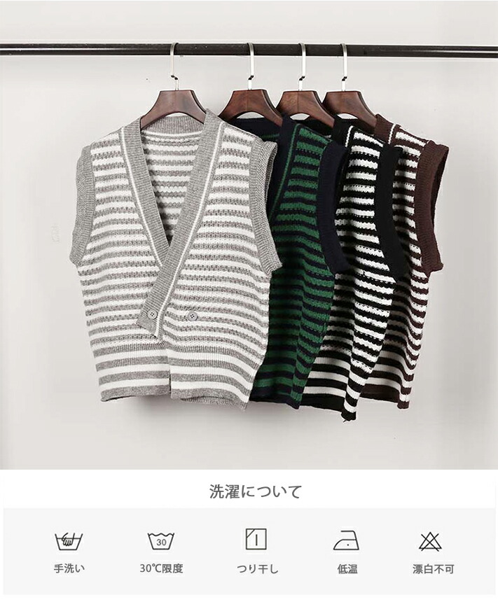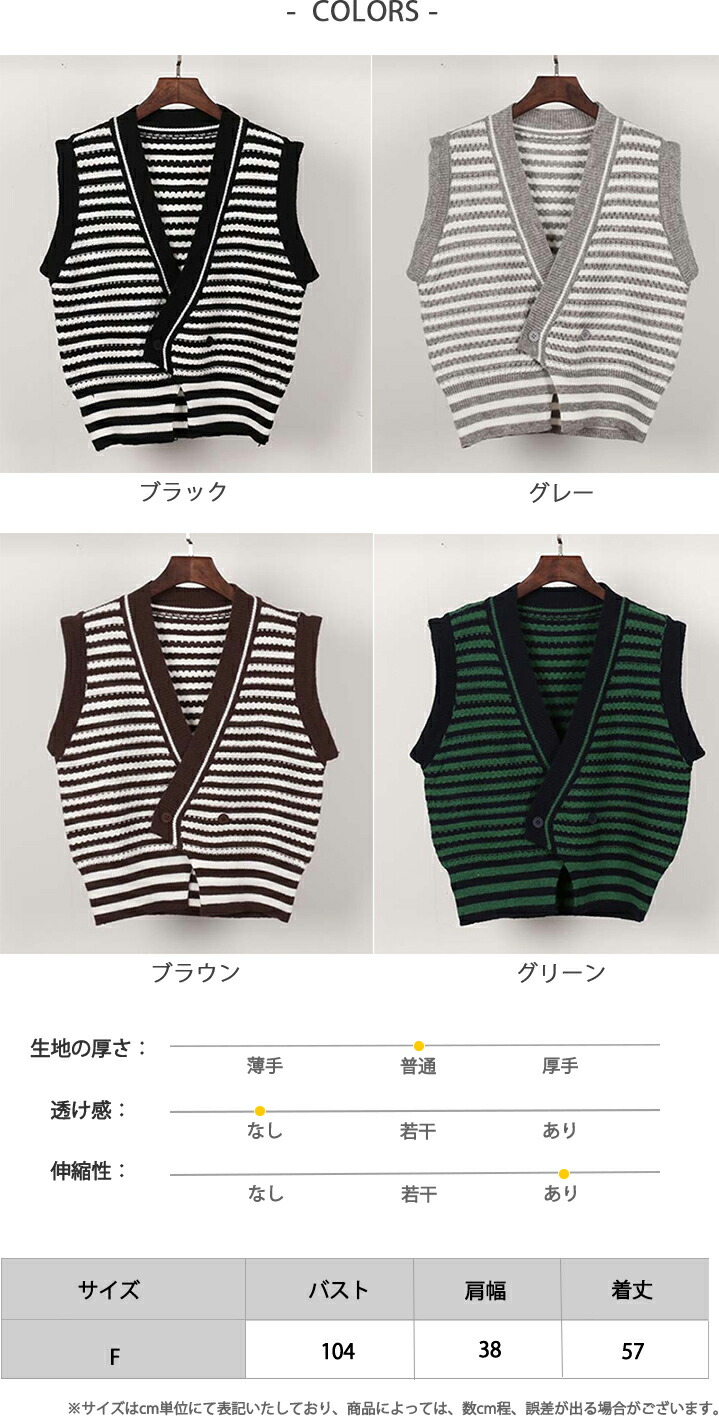 3B20 ボーダー柄 ト ニットベスト レディースファッション お得なセール グレー ブラック ブラウン グリーン