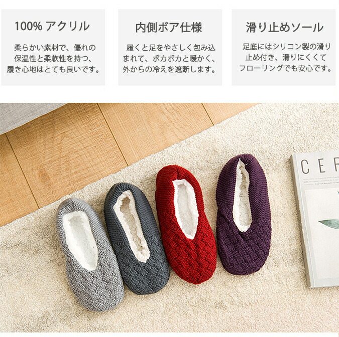 1B31あったか ボアルームソックス レディース 靴下 レッグウェア 靴下 お得なセール 35-38(23cm-24cm相当) 39-42(24.5cm-26cm相当) グレー ダークグレー パープル レッド グレー(リボン) ダークグレー(リボン)