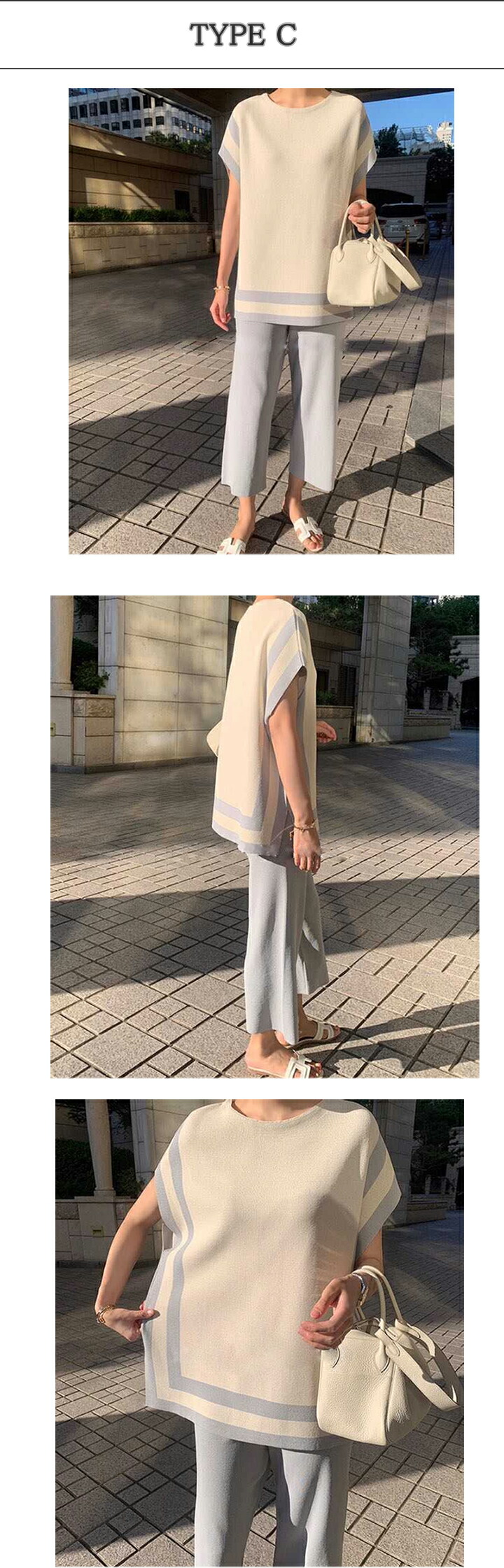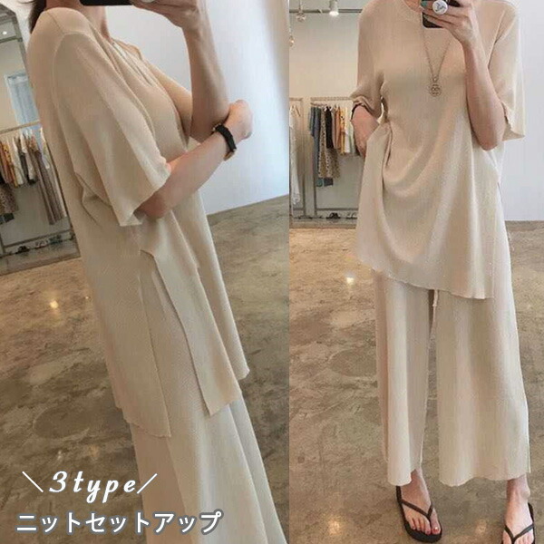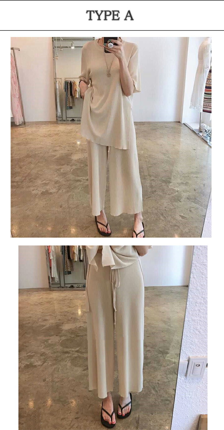 2C11 セットアップ ニット パンツ レディースファッション 人気 Type A(アイボリー) TypeA(キャメル) TypeA(ブラック) Type B(ベージュ Type B(ブラック) Type C(ライトブルー) Type C(ブラック)