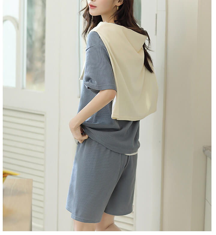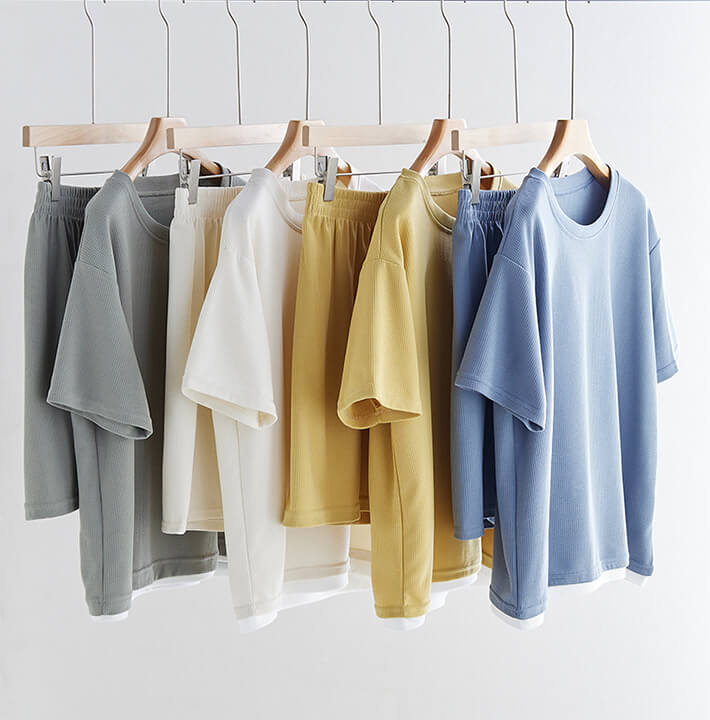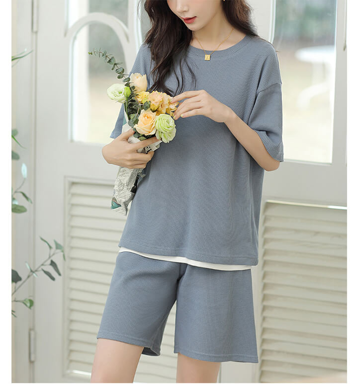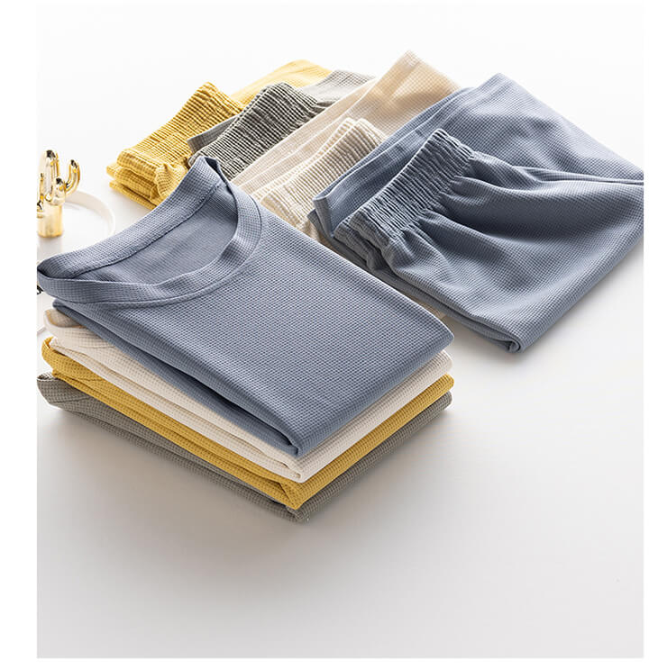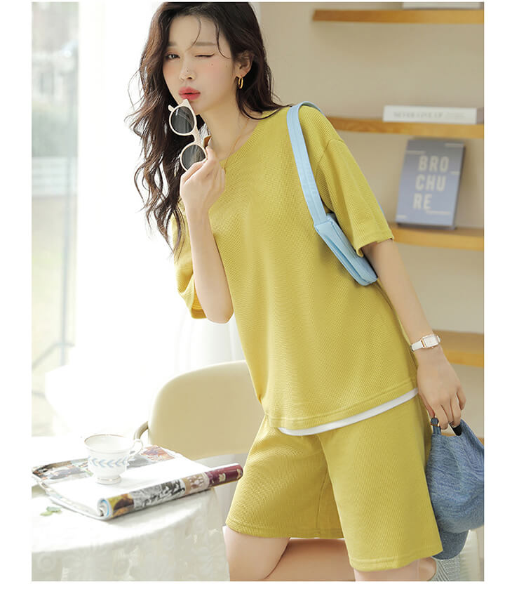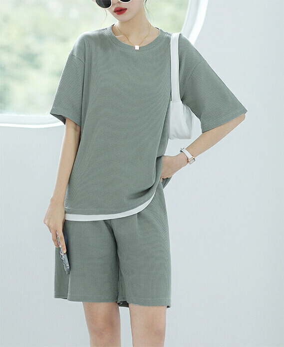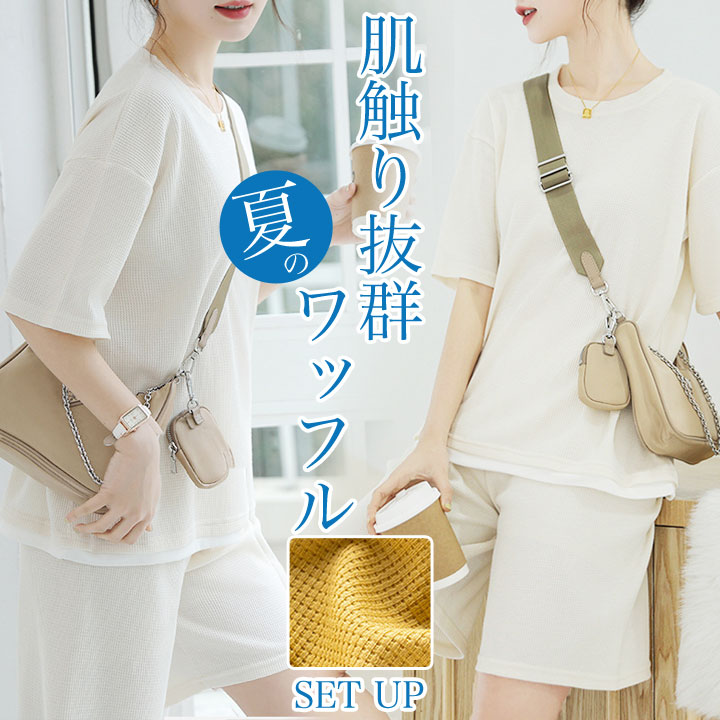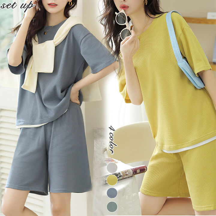 2A34 ワッフルセットアップ フェイ レディースファッション 通販 ベージュ イエロー モスグレイ ブルー