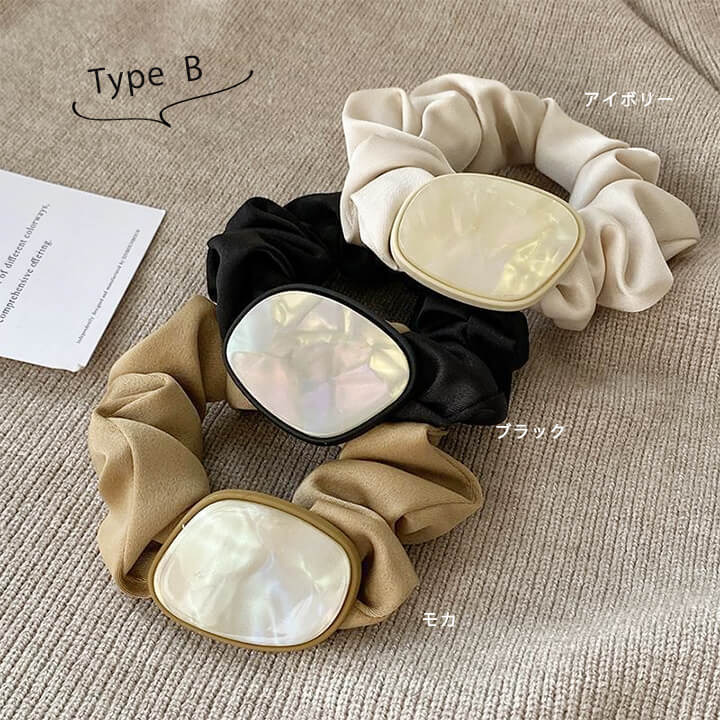 RU-3 2タイプシュシュ ヘアゴムレ ジュエリー アクセサリー 豊富な品揃え Type A(アイボリー) Type A(ラベンダー) Type A(ブラック) Type B(アイボリー) Type B(モカ) Type B(ブラック)