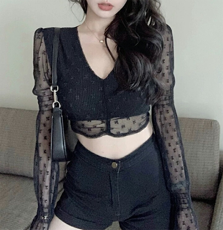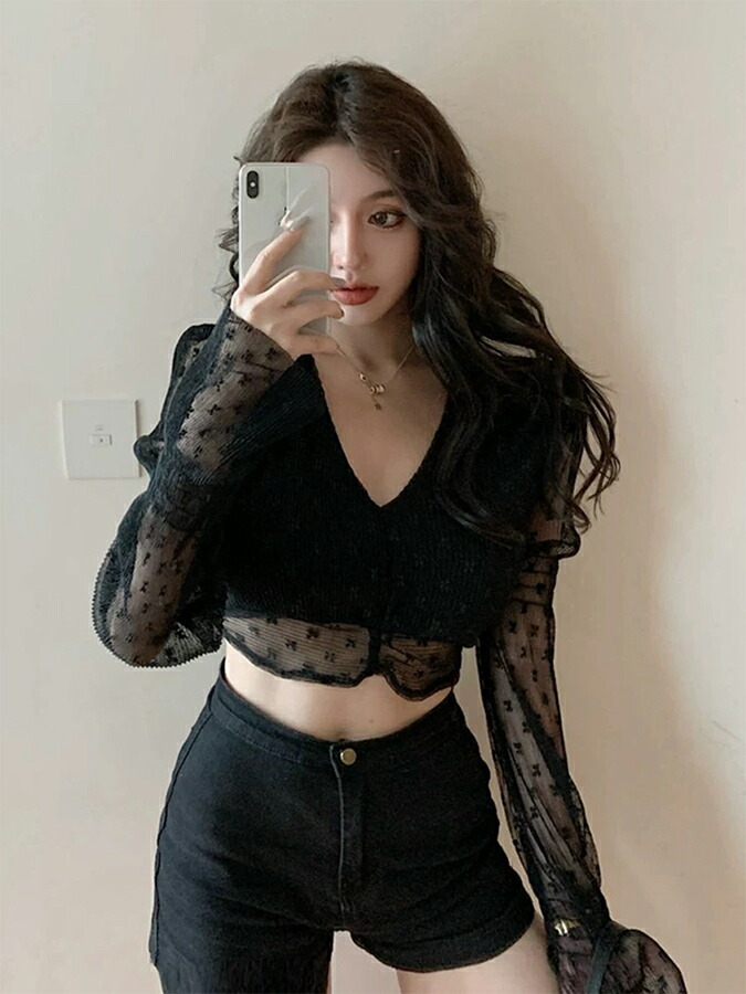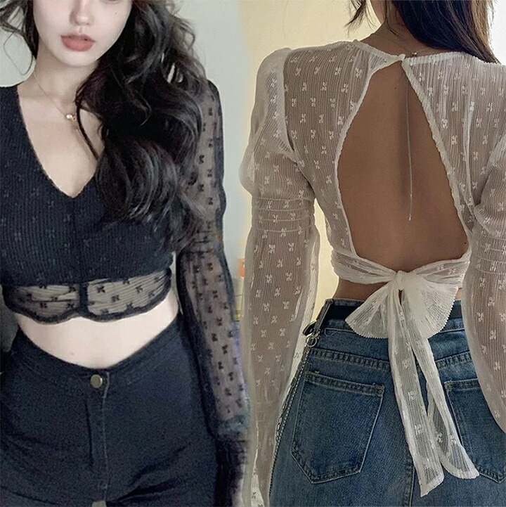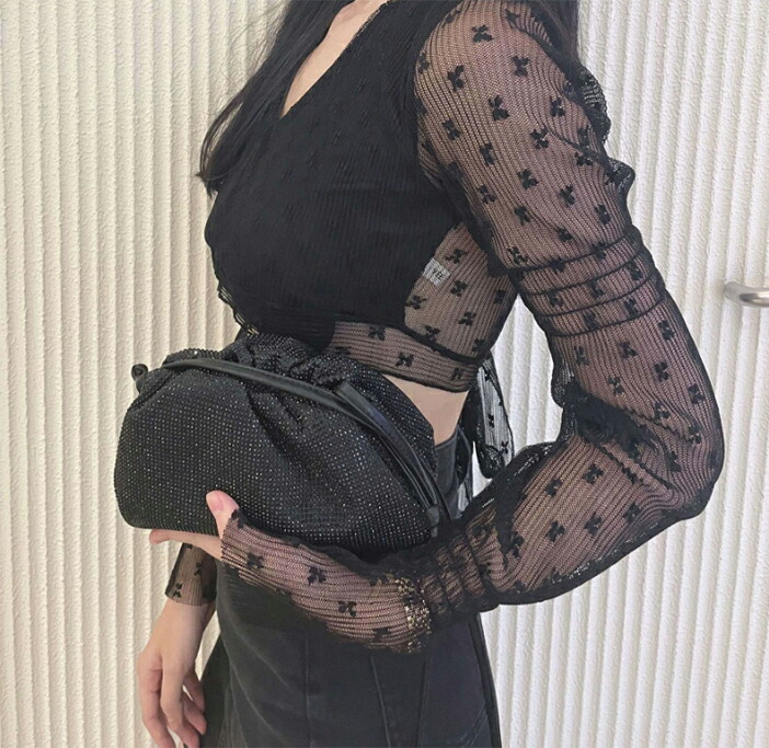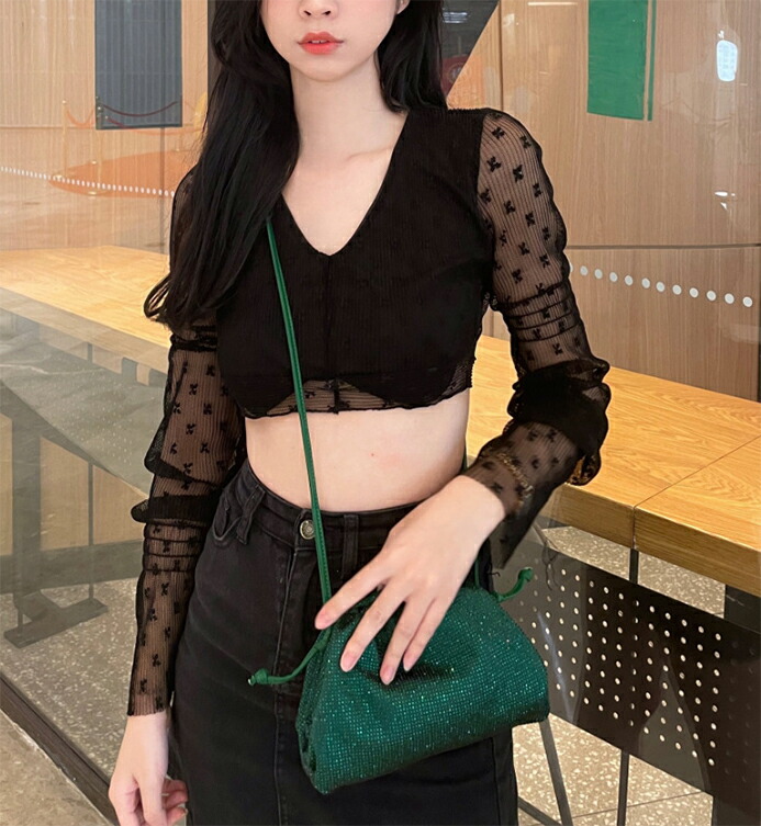 2A45 フリル袖 ショートトップス レディースファッション お買い得 ホワイト ブラック