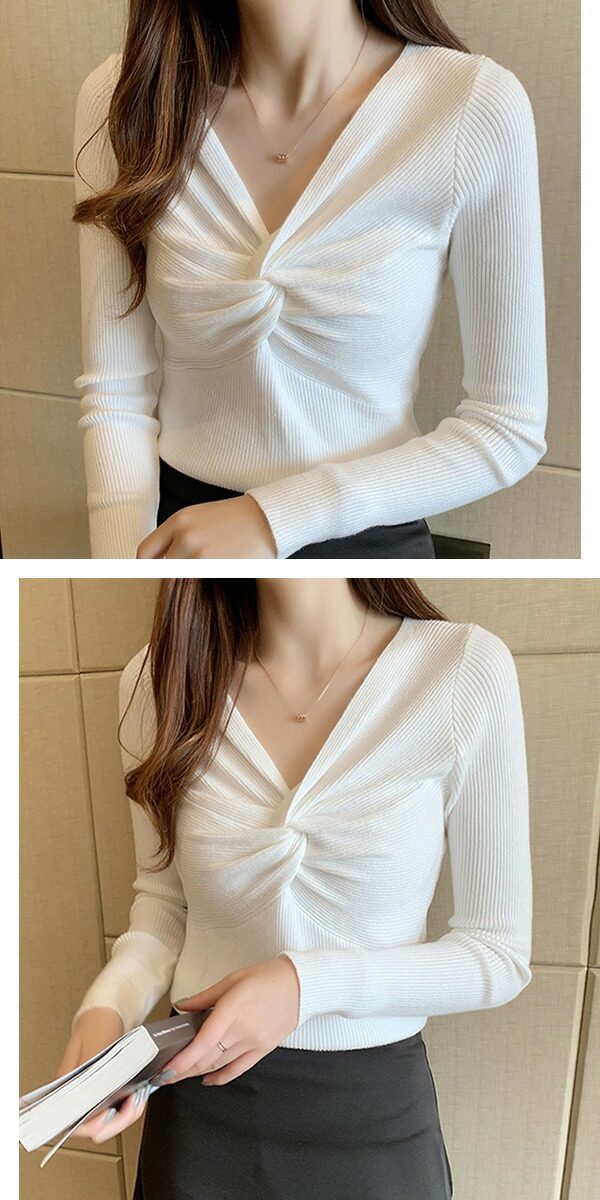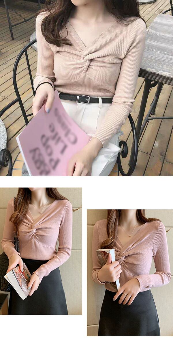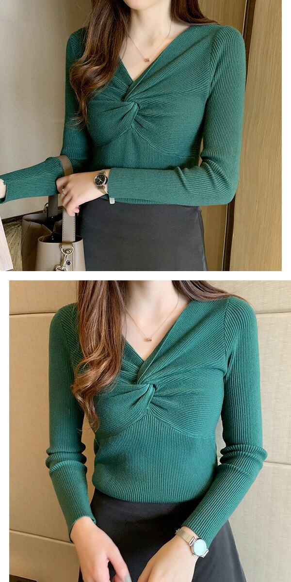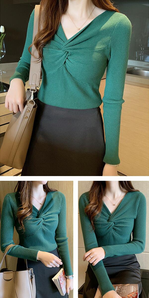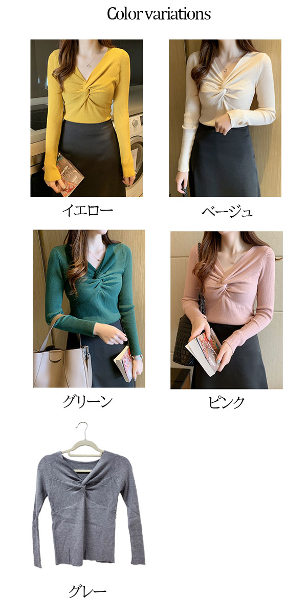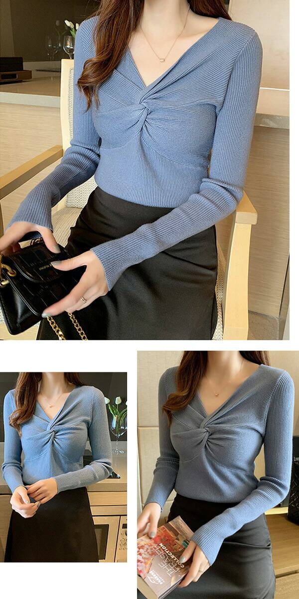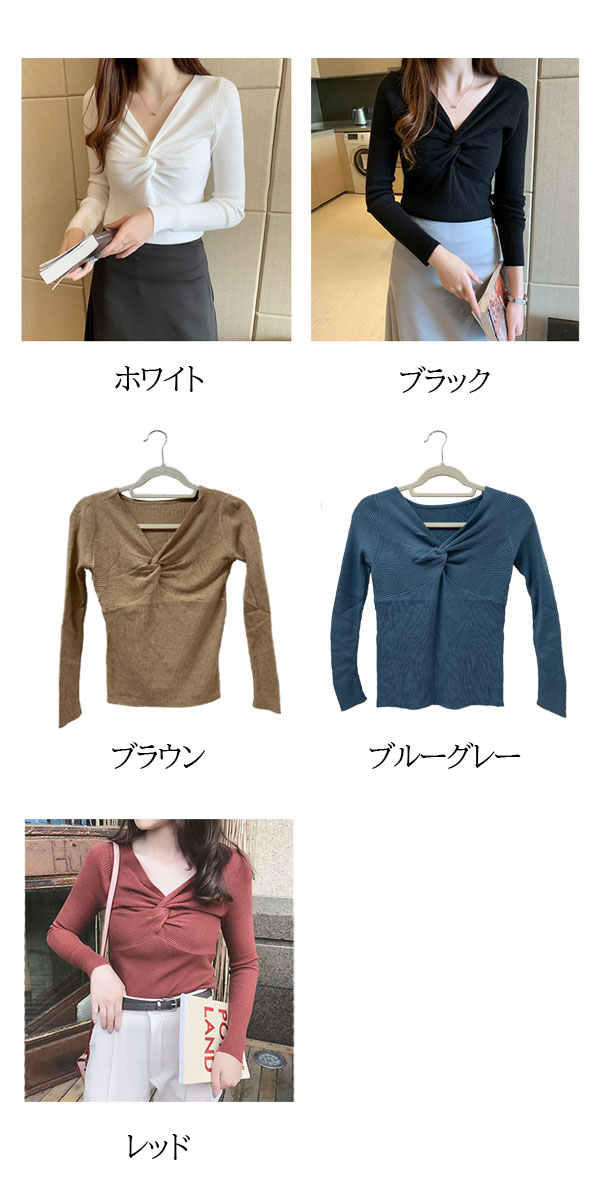 2A36 Vネックニットトップス ねじ レディースファッション お得なセール ホワイト ブラック ブラウン ブルーグレー レッド ベージュ グレー イエロー ピンク グリーン