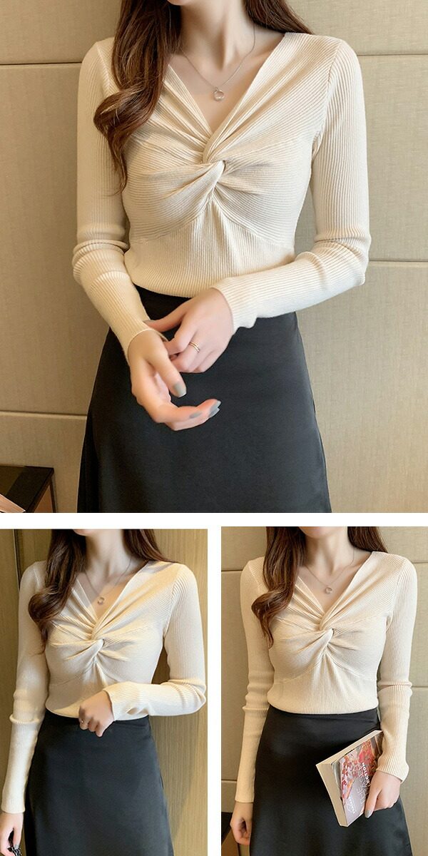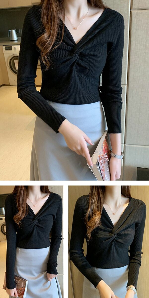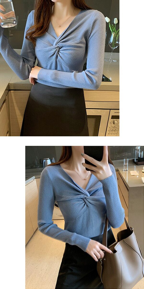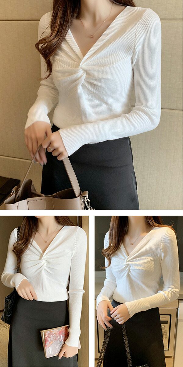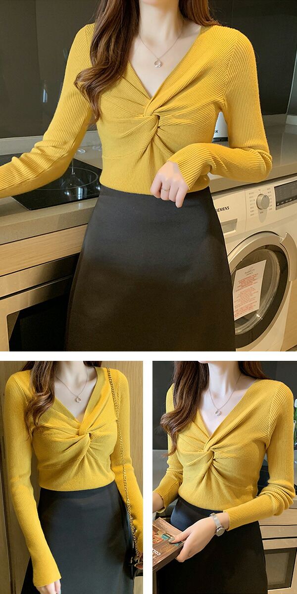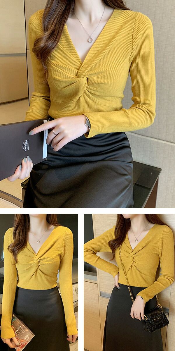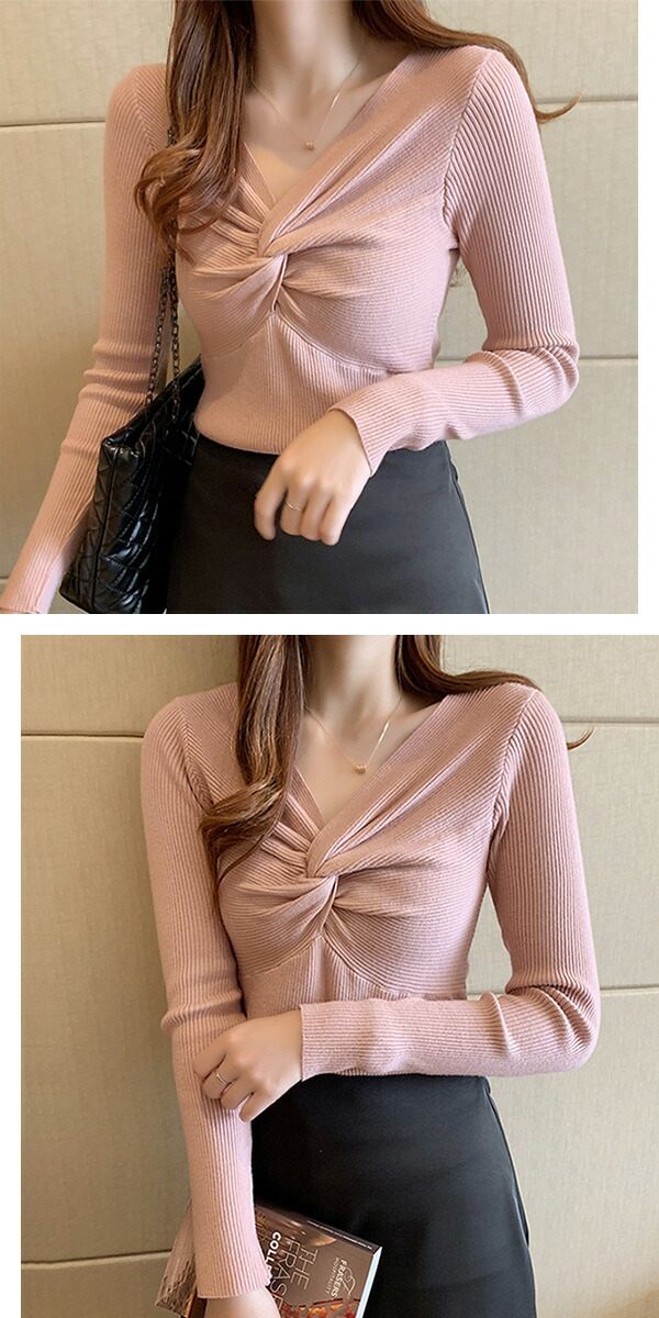 2A36 Vネックニットトップス ねじ レディースファッション お得なセール ホワイト ブラック ブラウン ブルーグレー レッド ベージュ グレー イエロー ピンク グリーン
