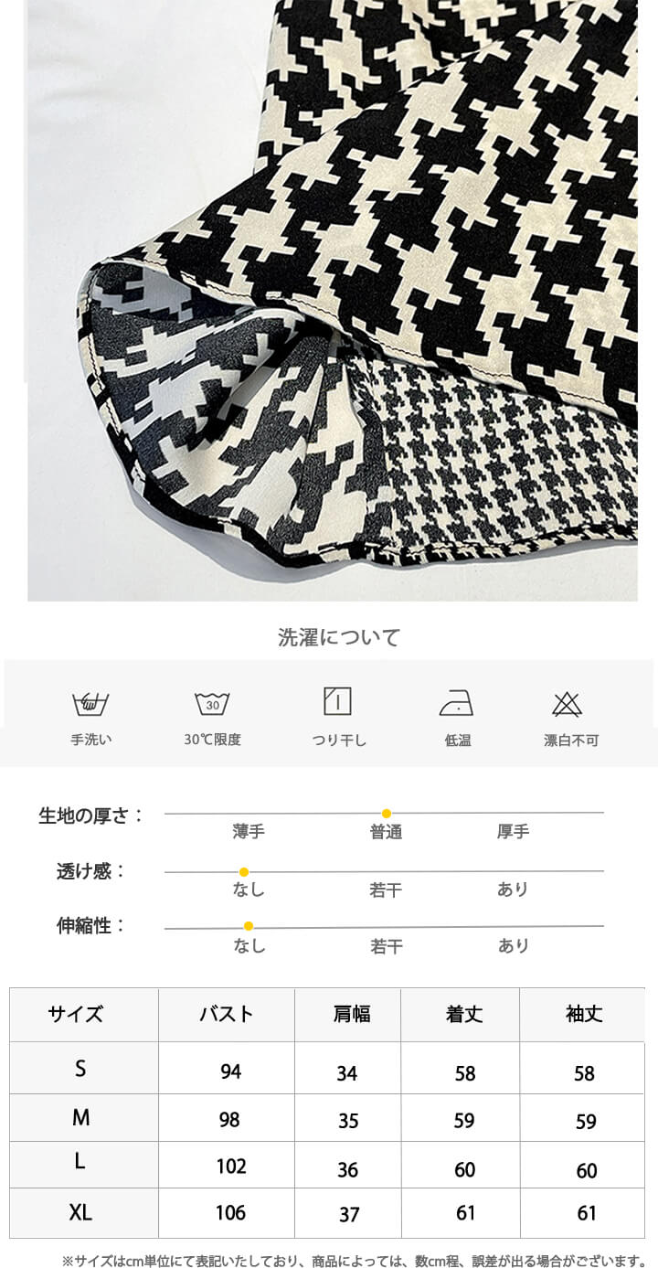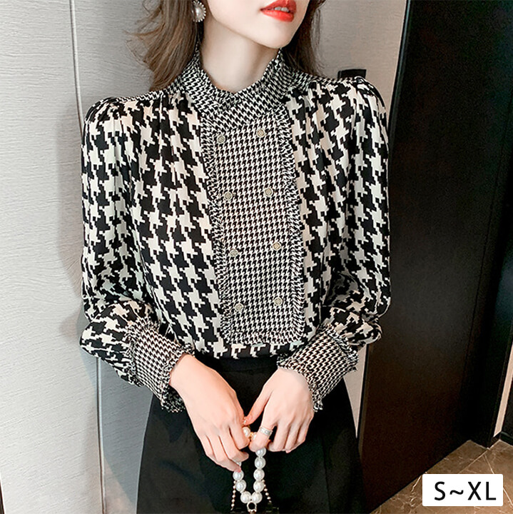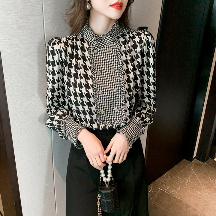 2A34スタンドカラーブラウス 千鳥柄 レディースファッション 続々登場 S M L XL