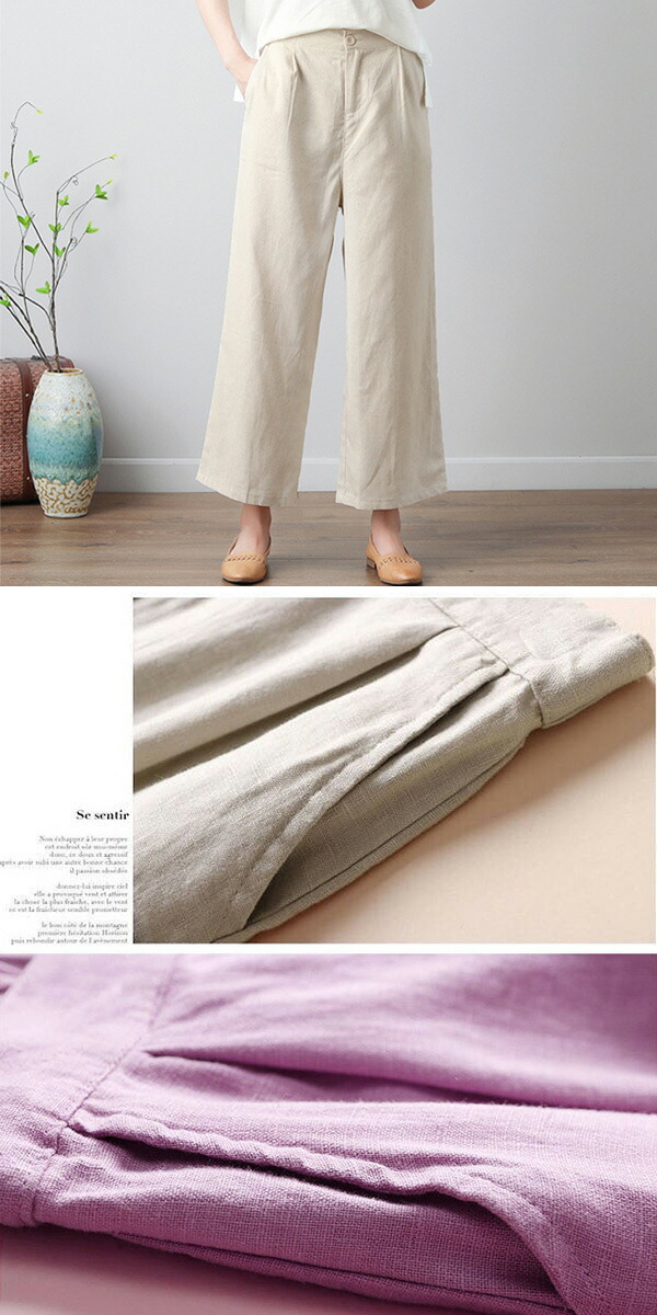 2A68カラーから選べる コットンリネ レディースファッション 続々登場 M L XL ホワイト ブラック ライトグレー ピンク ライトグリーン パープル ベージュ ブラウン