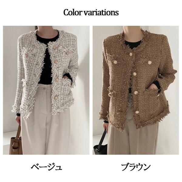 3B21 2カラーノーカラージャケット コート ジャケット お得なセール ベージュ ブラウン