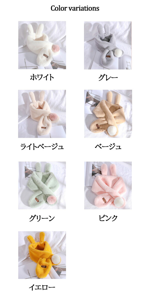 3A12 キッズマフラー ラビットファ キッズ アクセサリー マフラー スカーフ 通販 ホワイト グレー ライトベージュ ベージュ グリーン ピンク イエロー