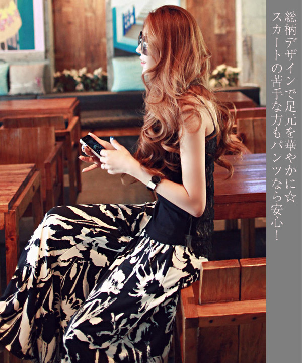 2B18 ボタニカル柄ロング丈スカンツ ボトムス パンツ 44%Off S M L