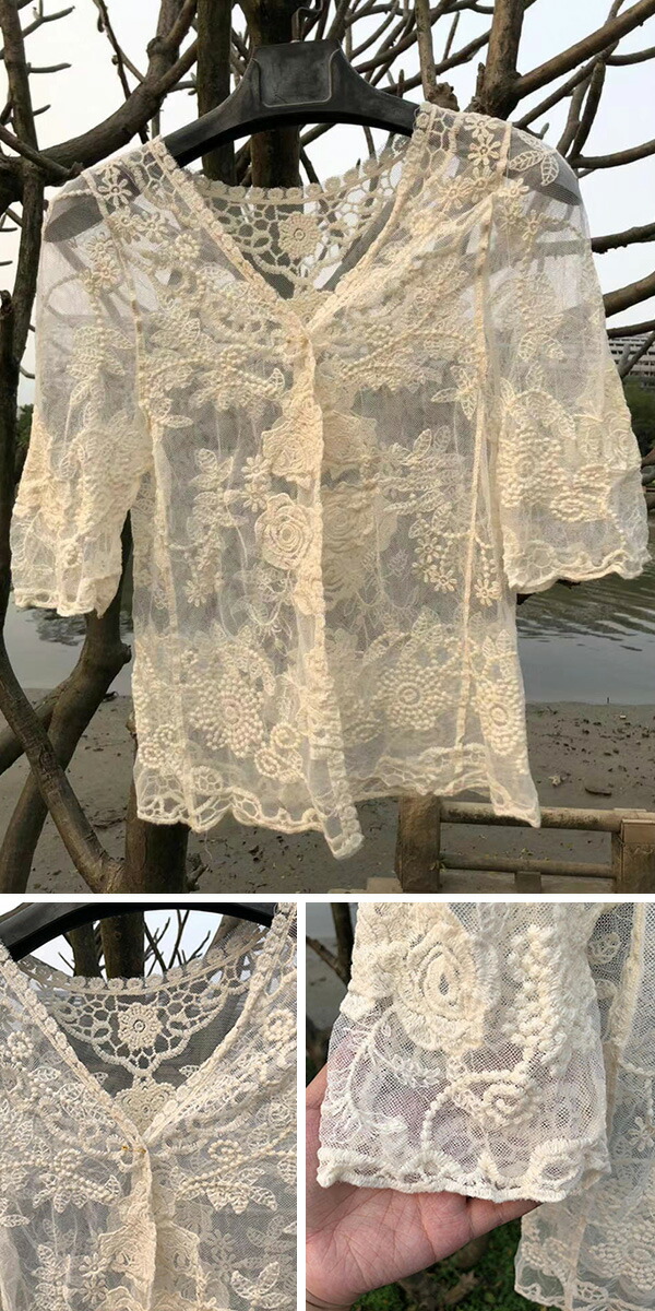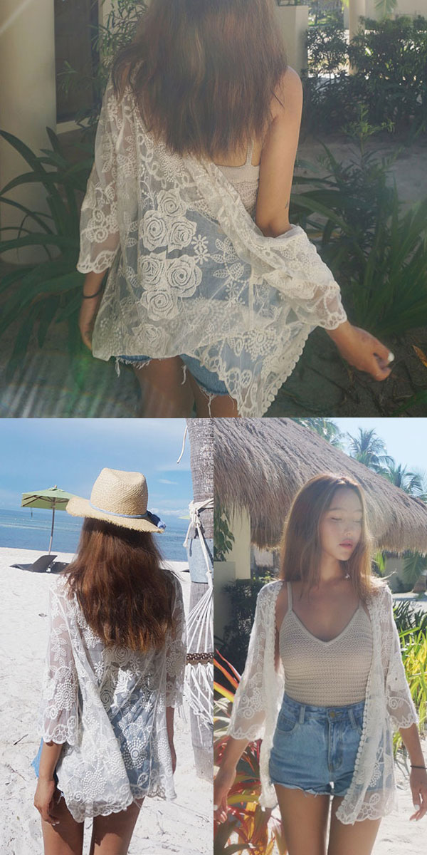 1B21 花柄レース刺繍カーディガン レディースファッション お買い得 ホワイト ベージュ