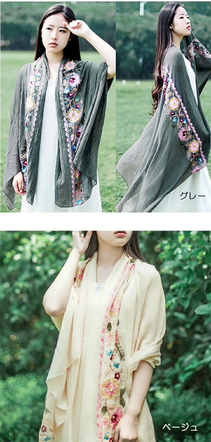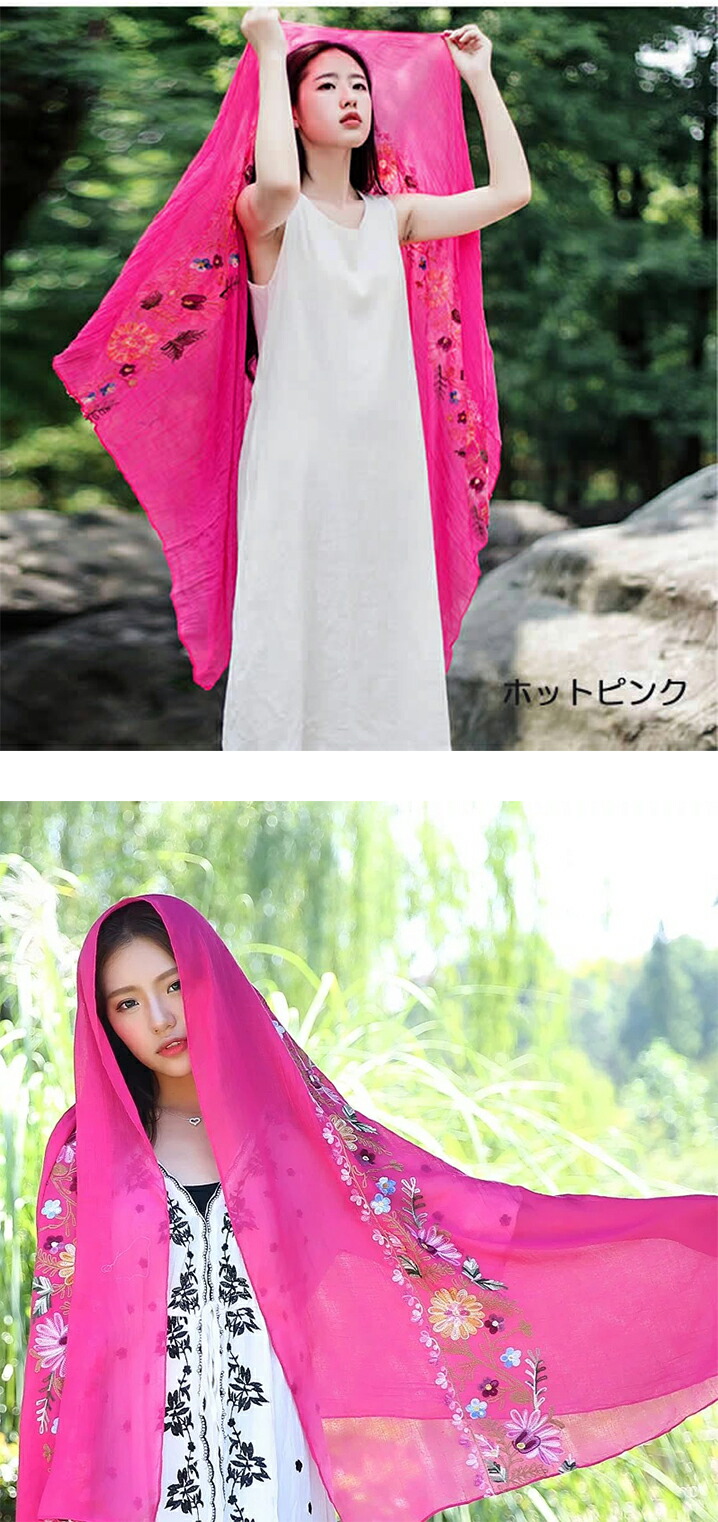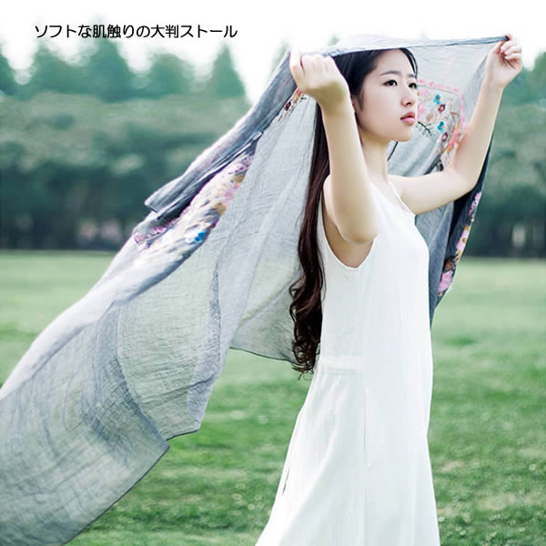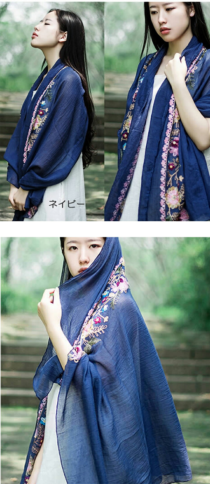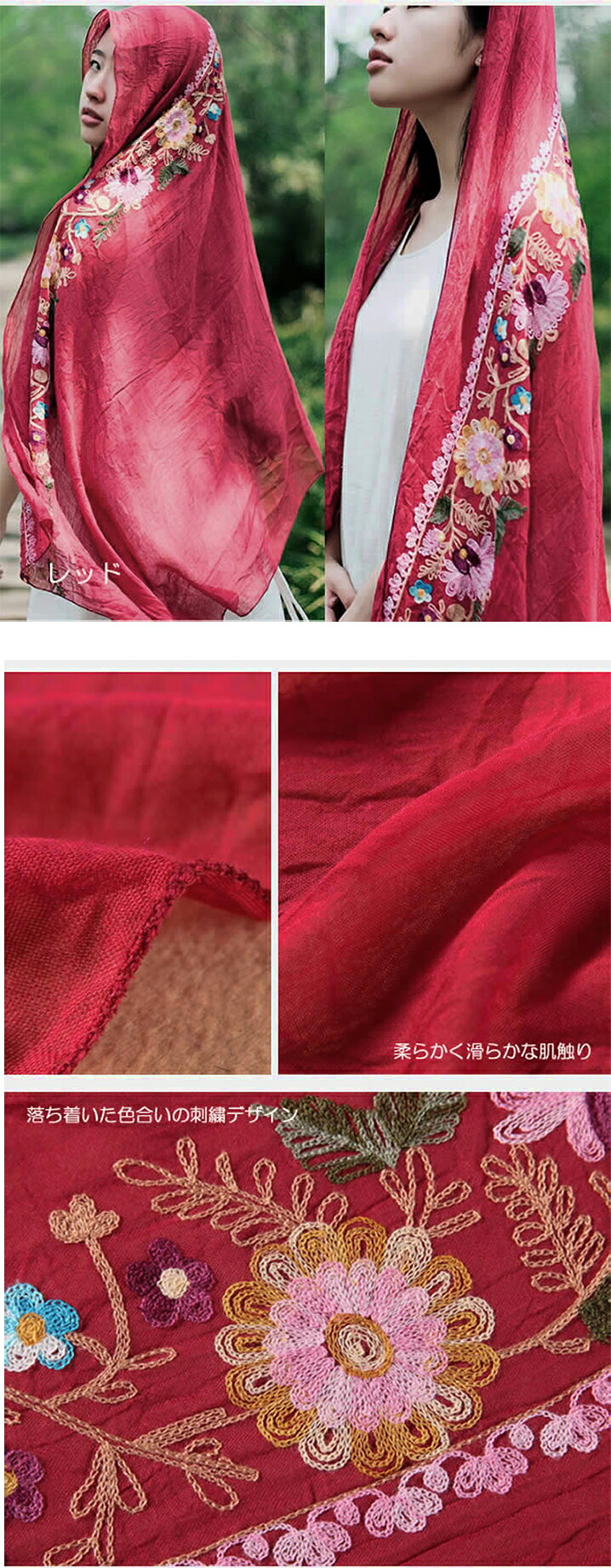 3C 花柄刺繍入り大判ストール マフラ レディースファッション 続々入荷中 ホワイト ブラック グレー ネイビー ベージュ ピンク ホットピンク レッド