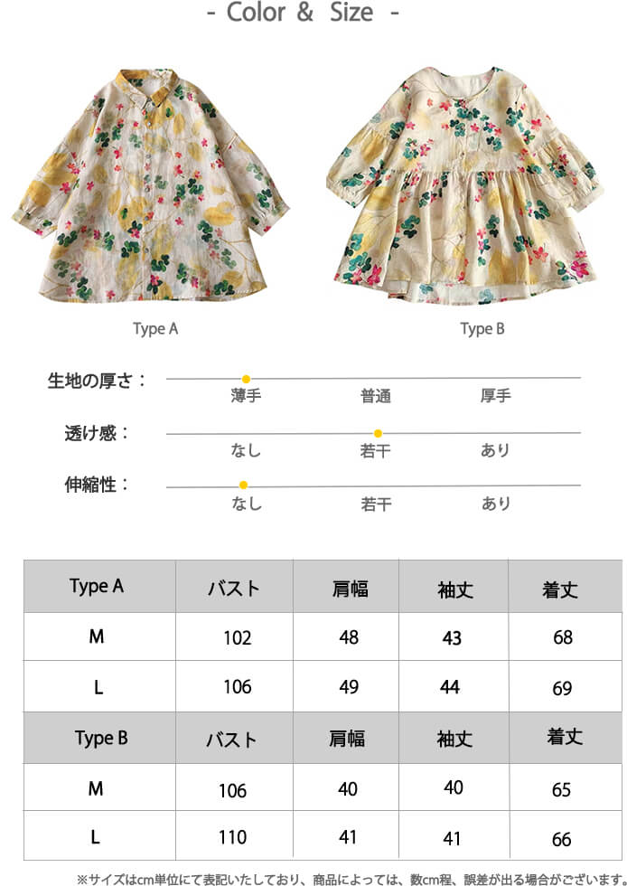 2A34綿麻シャツブラウス レディース レディースファッション 42%Off M L Type A Type B