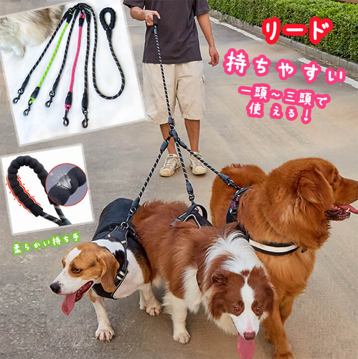2C11リード 犬 多頭用 引きリード 犬用品 首輪 胴輪 リード リード お買い得 長い 短い ブラック ピンク グリーン