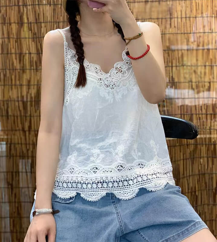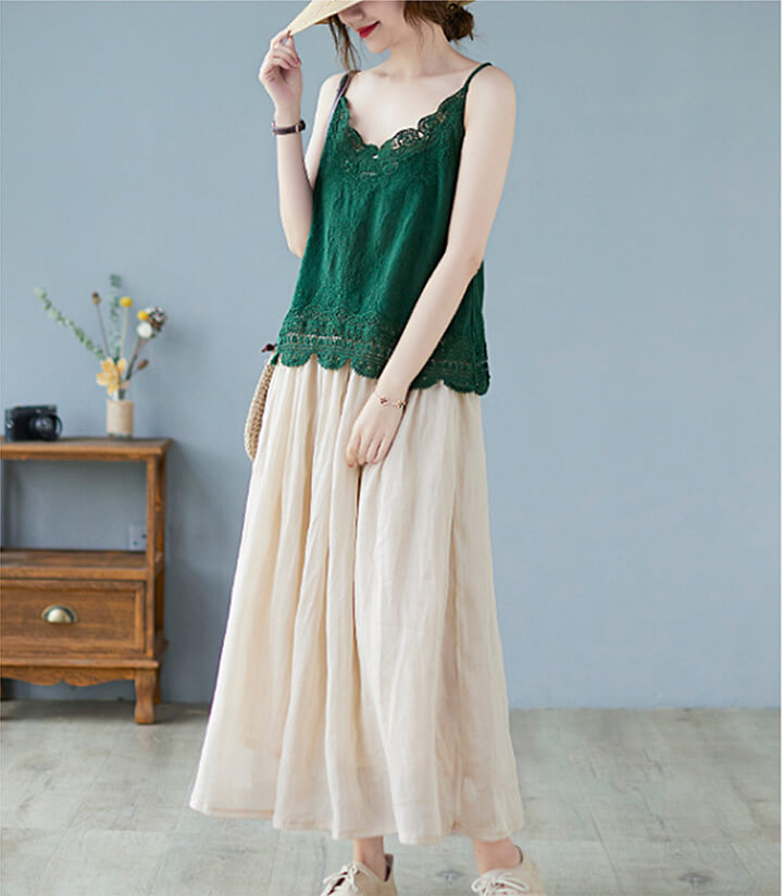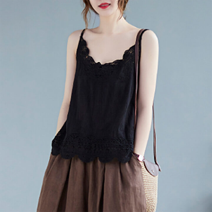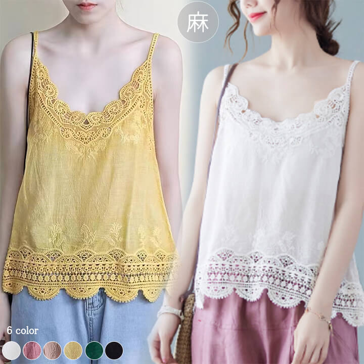 2B22 綿麻 タンクトップ キャミソ レディースファッション お得なセール ホワイト ピンク イエロー グリーン ブラウン ブラック