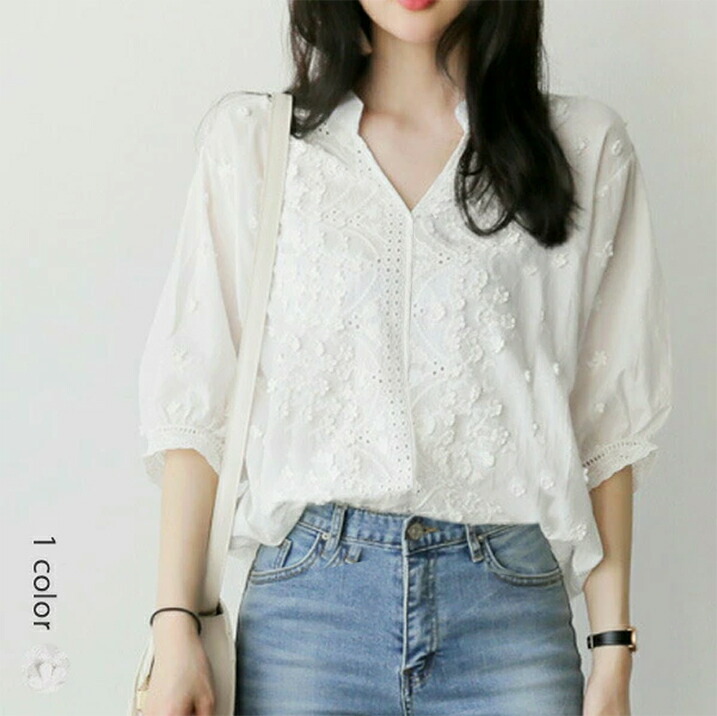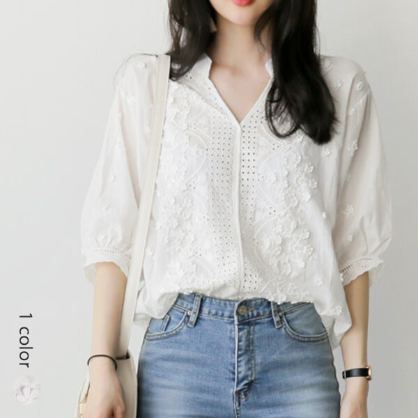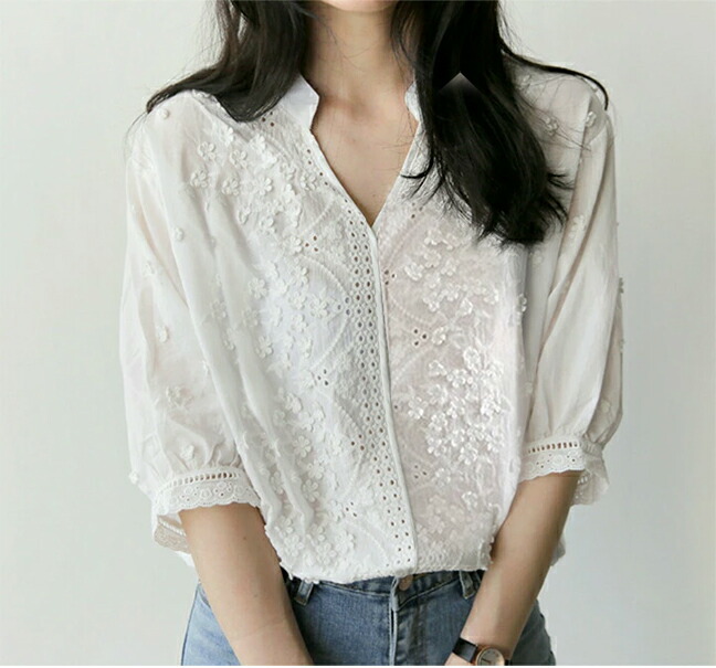 2A1刺繍 パンチング レース シャツ トップス シャツ ブラウス 42%Off S M L XL