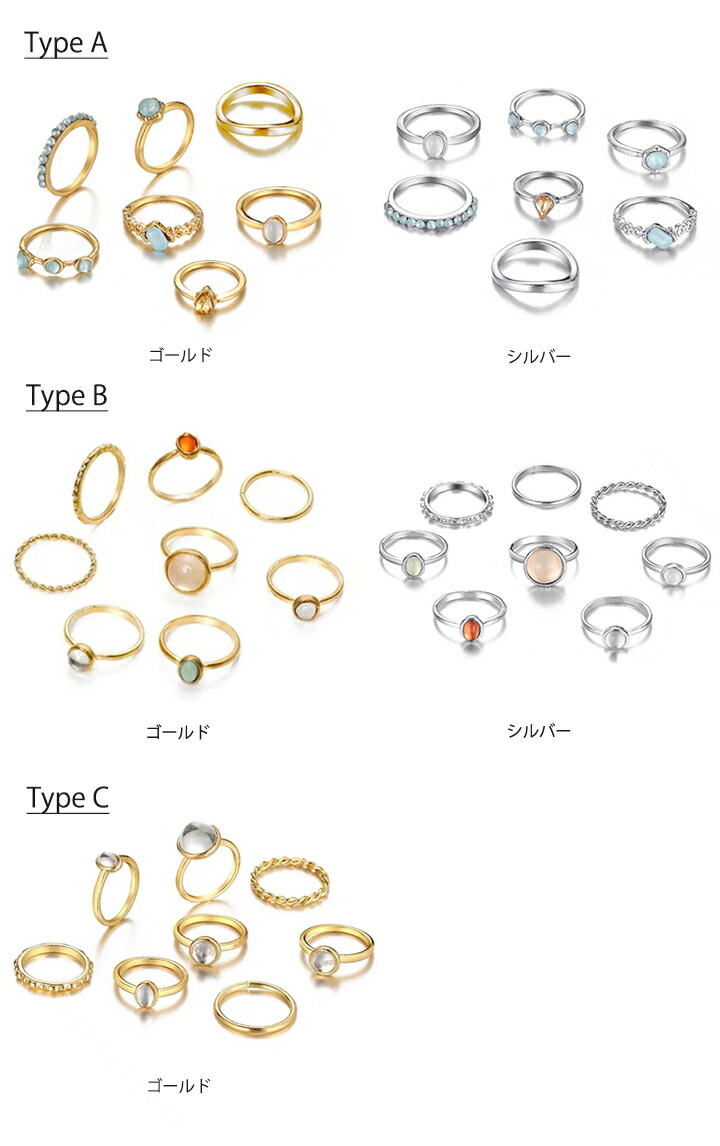 RBリングセット レディース 5タイプ レディースジュエリー アクセサリー 指輪 リング 豊富な品揃え Type A(ゴールド) Type A(シルバー) Type B(ゴールド) Type B(シルバー) Type C(ゴールド)