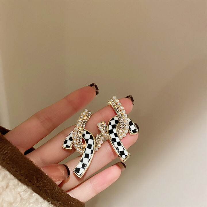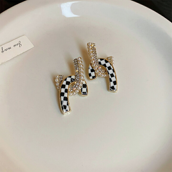 C-7 パール ブロックチェック柄 ピ レディースジュエリー アクセサリー ピアス 豊富