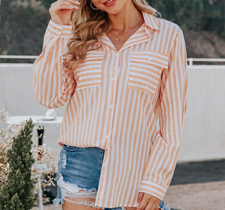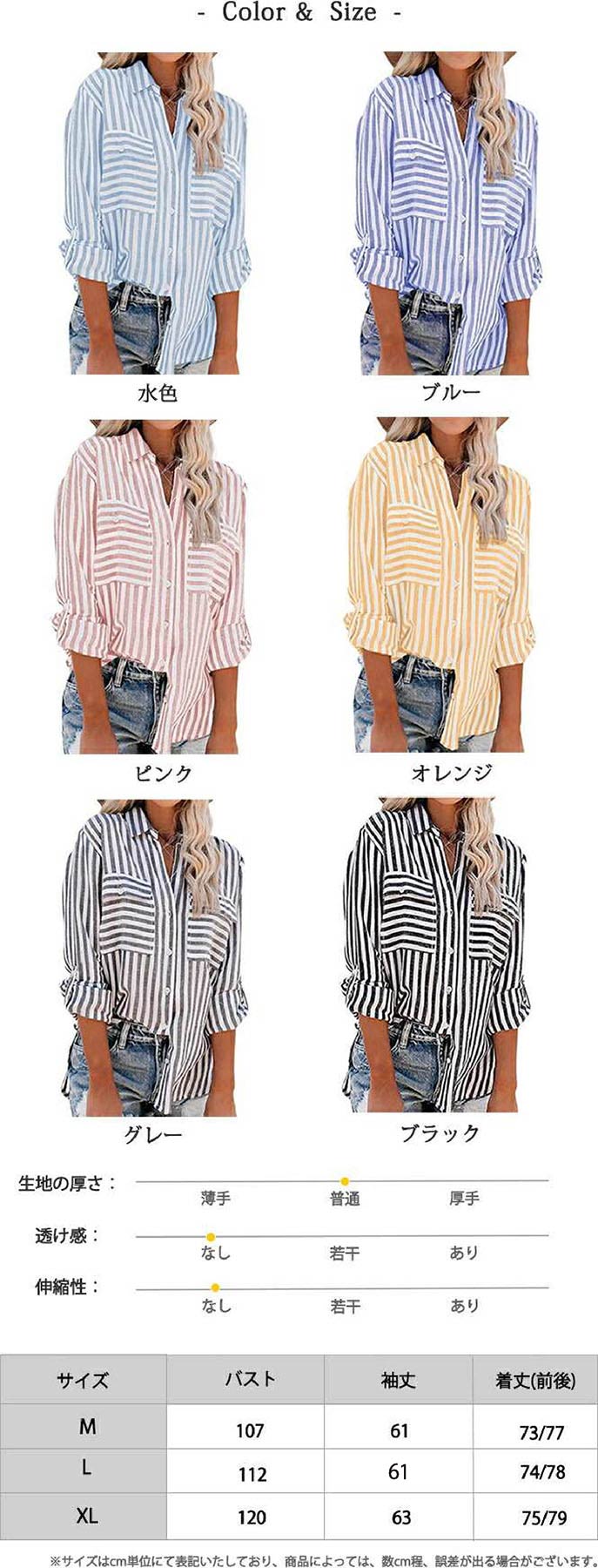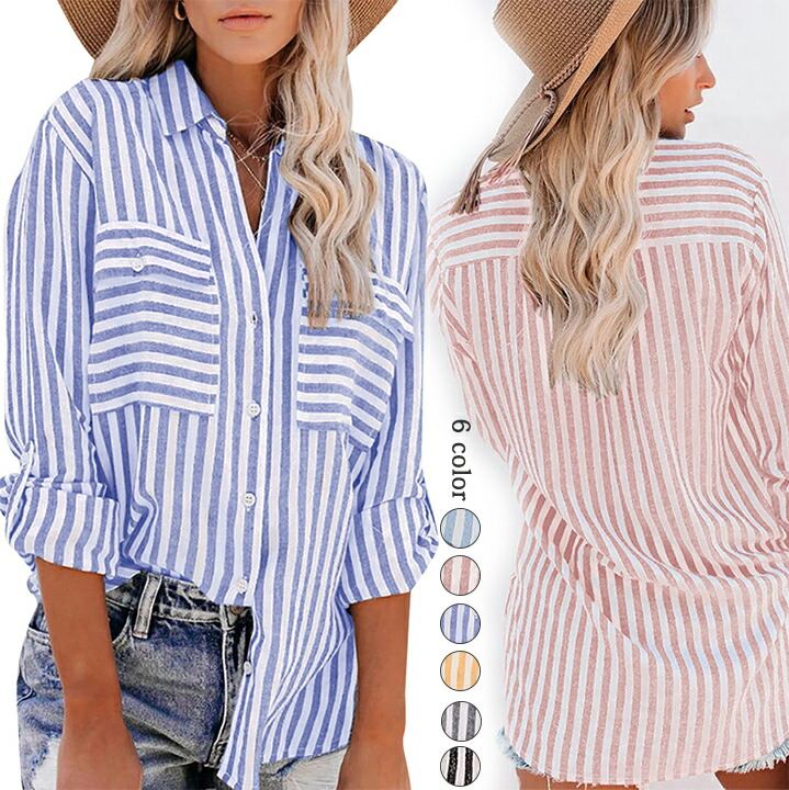 2A38 ストライプルーズシャツ 前後 レディースファッション 続々登場 M L XL 水色 ブルー ピンク オレンジ グレー ブラック