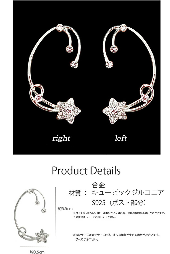 E-11 S925 金メッキ リーフモ ジュエリー アクセサリー お得なセール リーフゴールド(右耳用) スートンシルバー(右耳用) 星(右耳用) 星(左耳用)