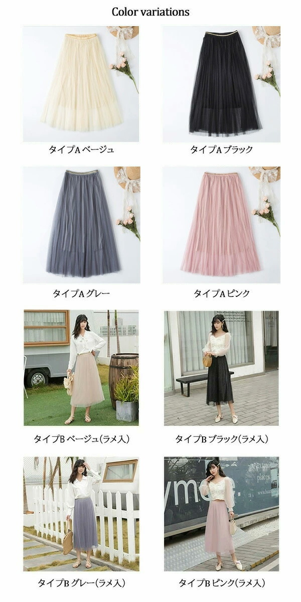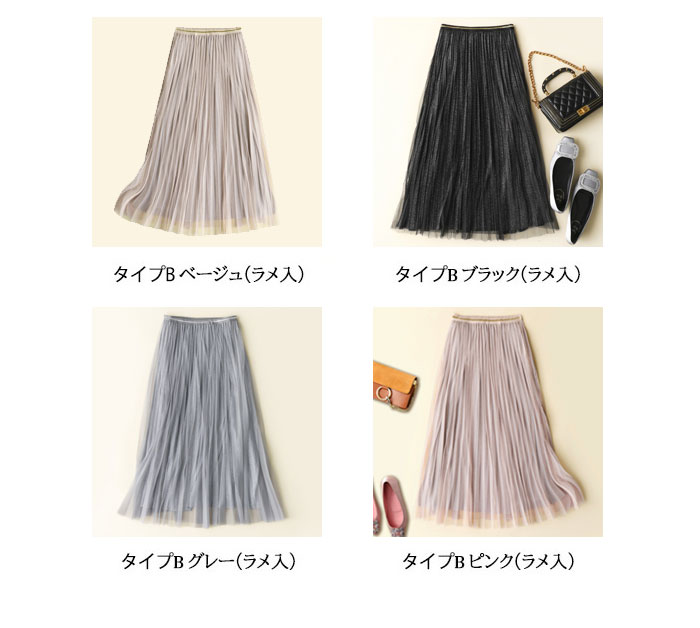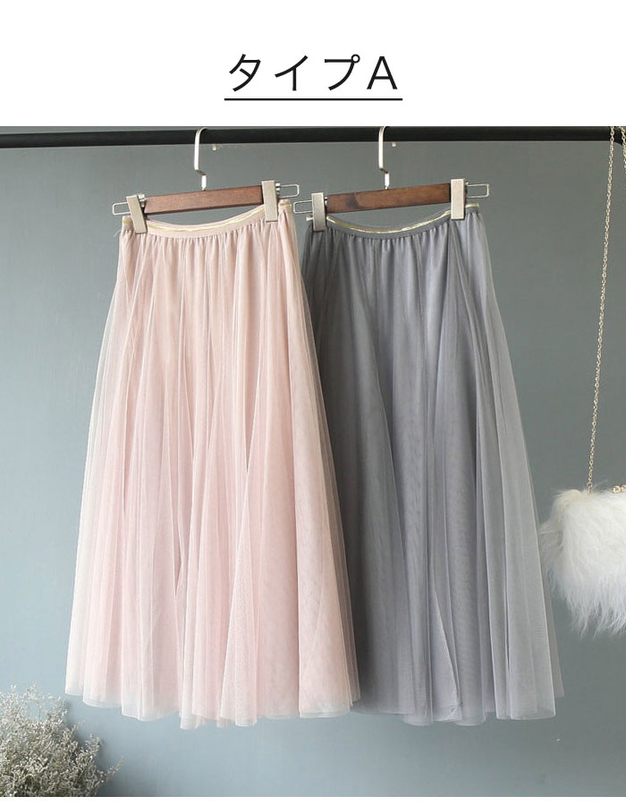 2A-24 チュールスカート 2タイプ ボトムス スカート 通販 タイプA タイプB(ラメ入り) ベージュ ブラック グレー ピンク