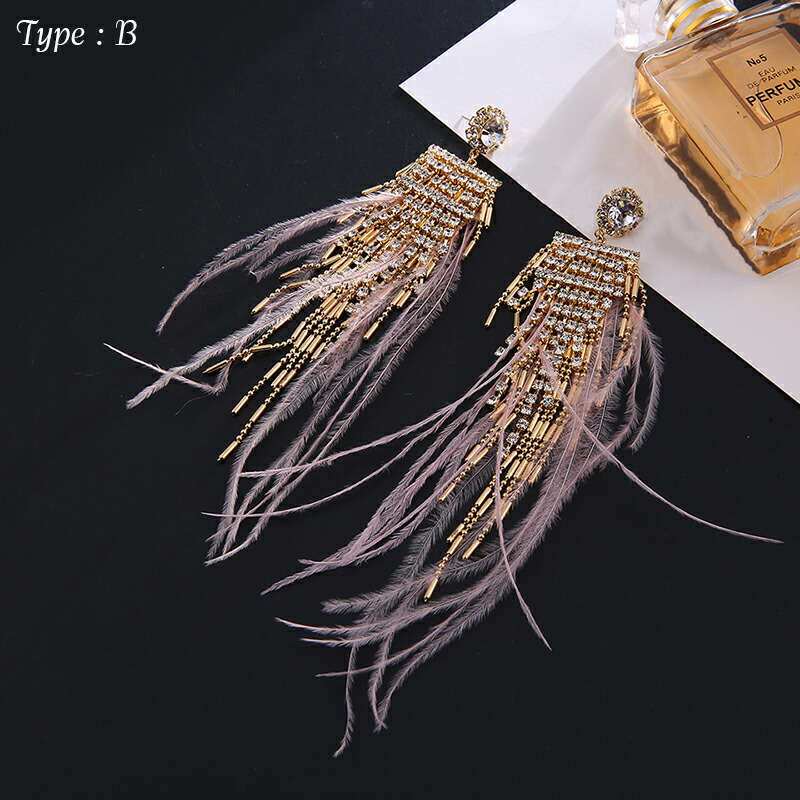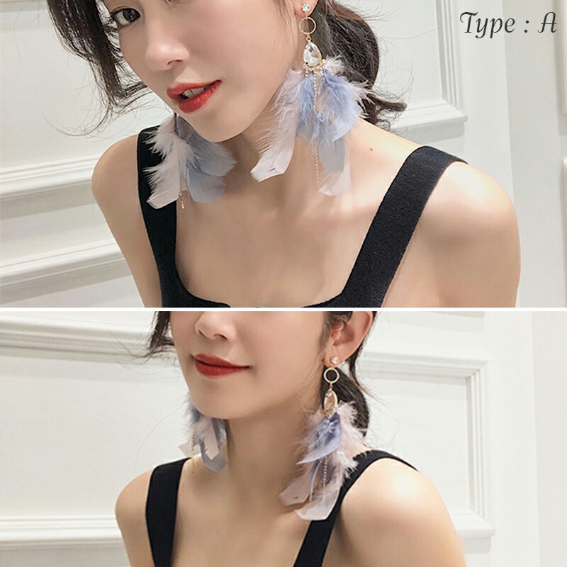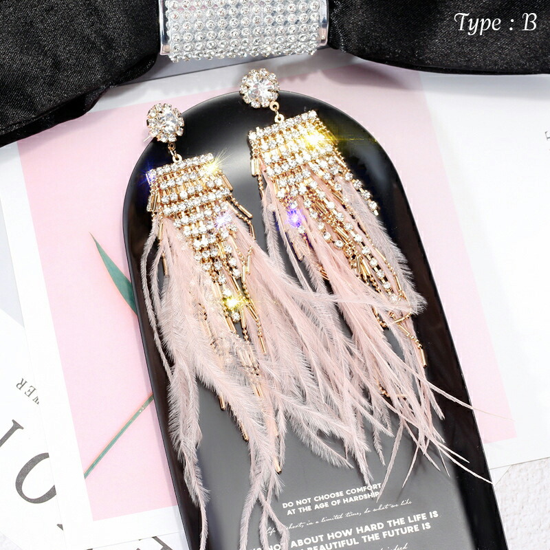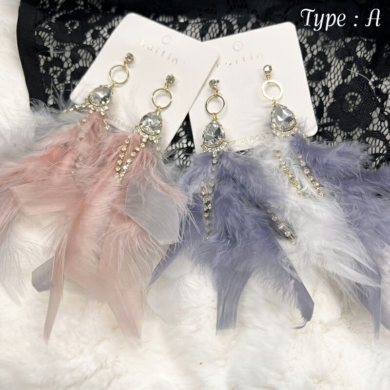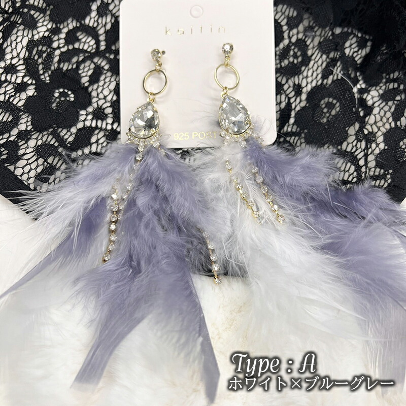 G-8S925 フェザーフリンジピアス ジュエリー アクセサリー お得なセール Type:A ピンク×グレー Type:A ホワイト×ブルーグレー Type:B ピンク