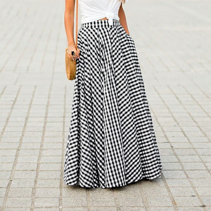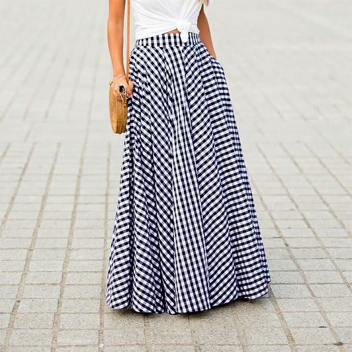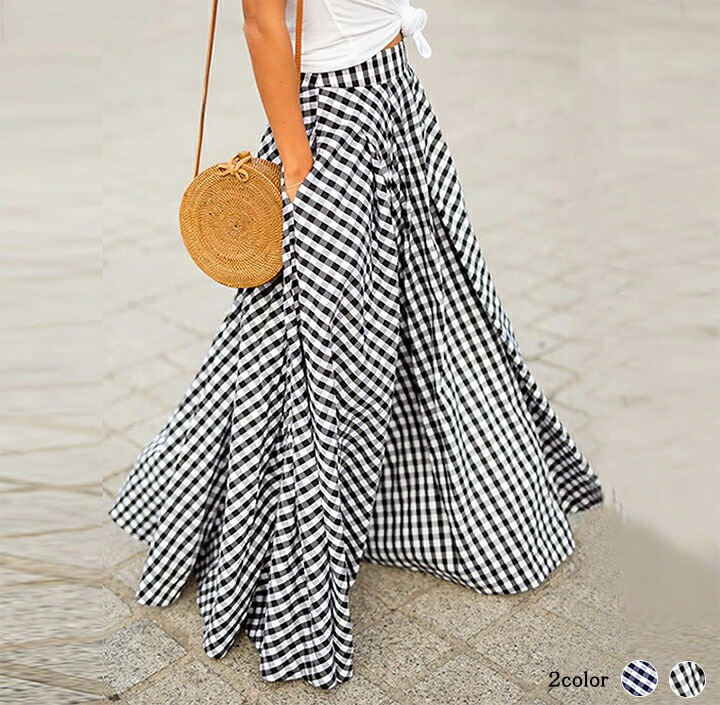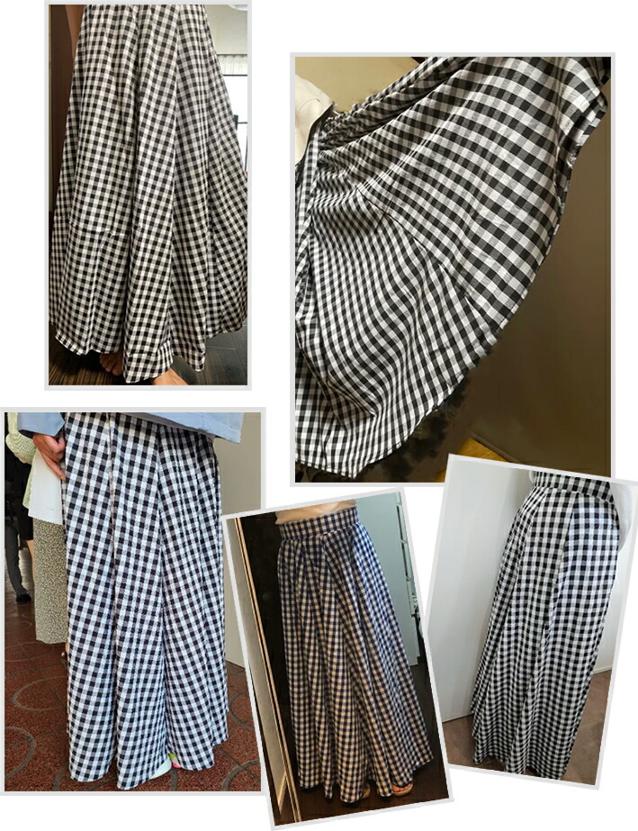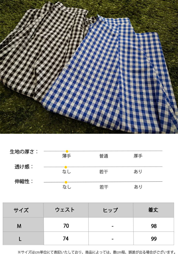 2A6 ギンガムチェック フレアスカー ボトムス スカート 人気 M L ブラック ネイビー
