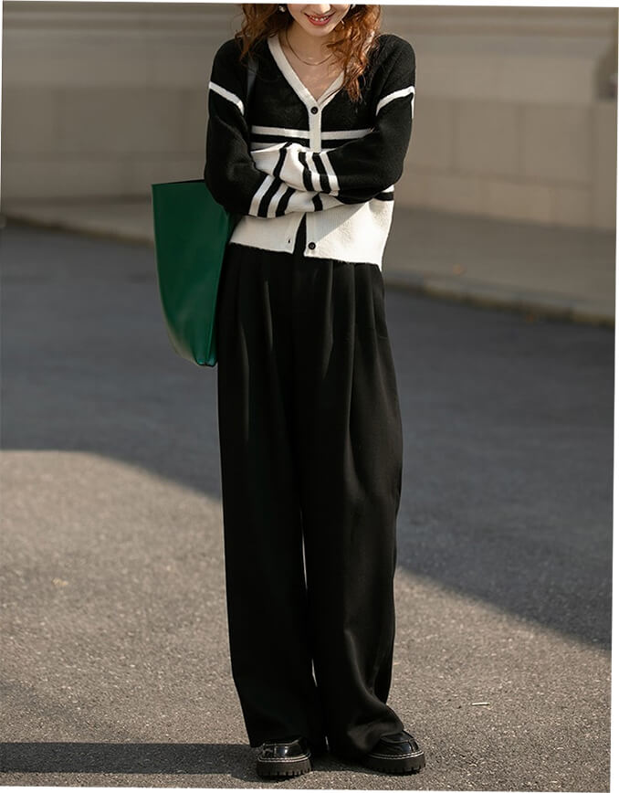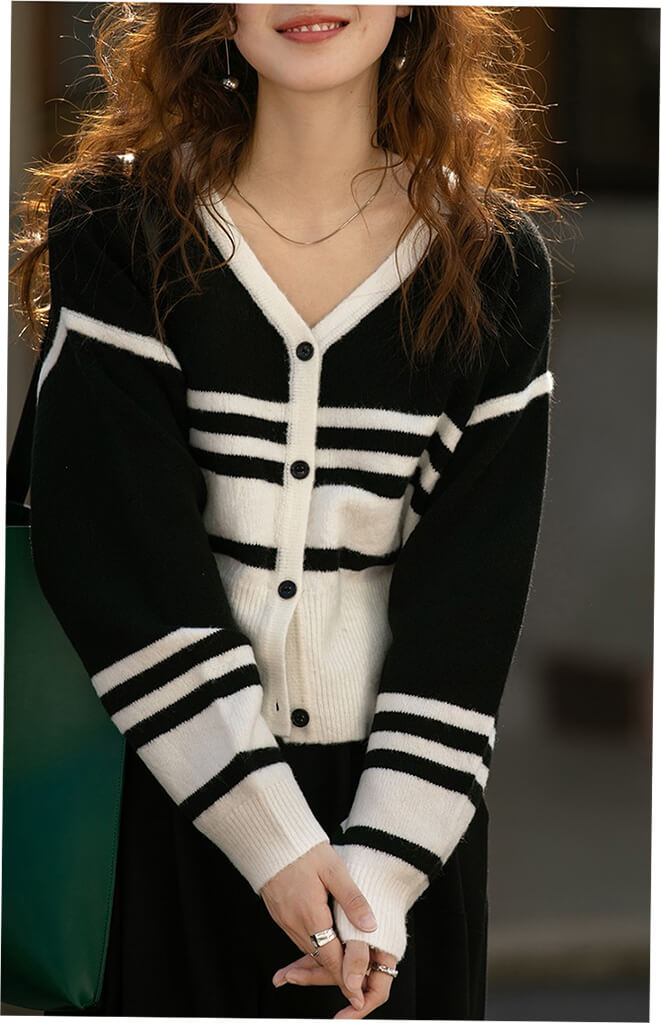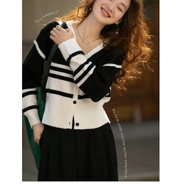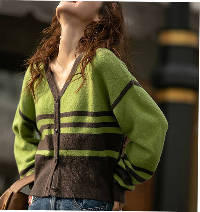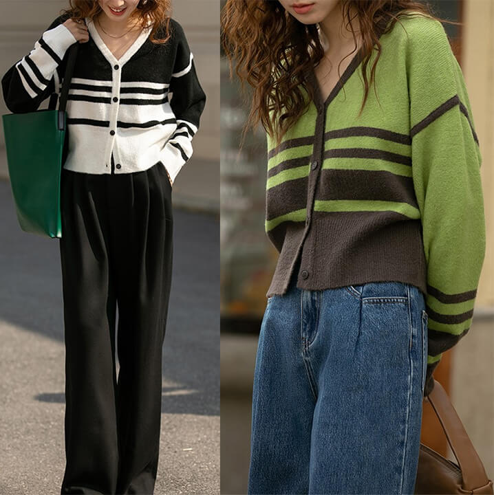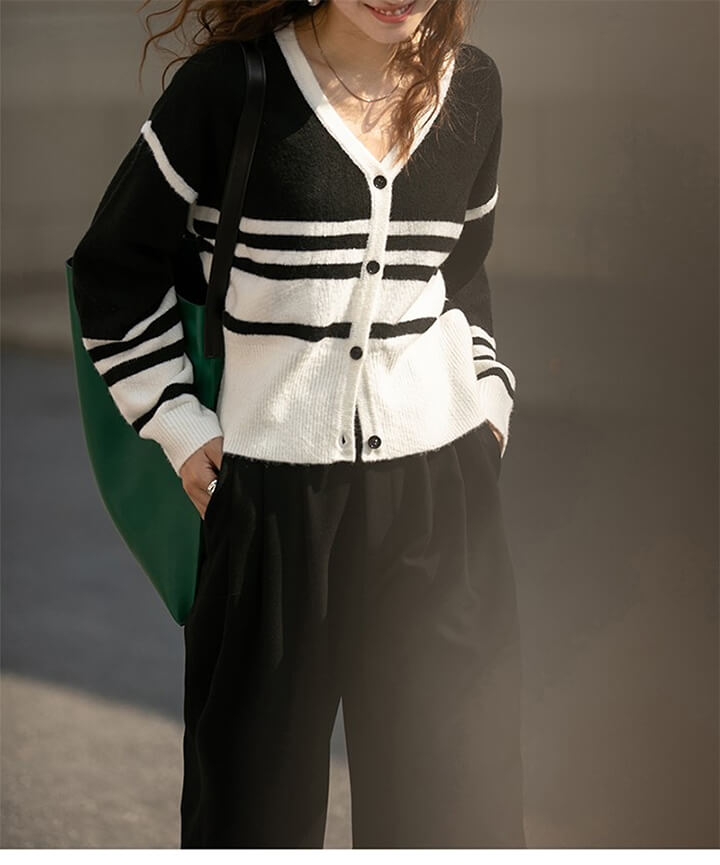 3B21 Vネックボーダーニットカーデ レディースファッション 続々入荷中 グリーン ブラック