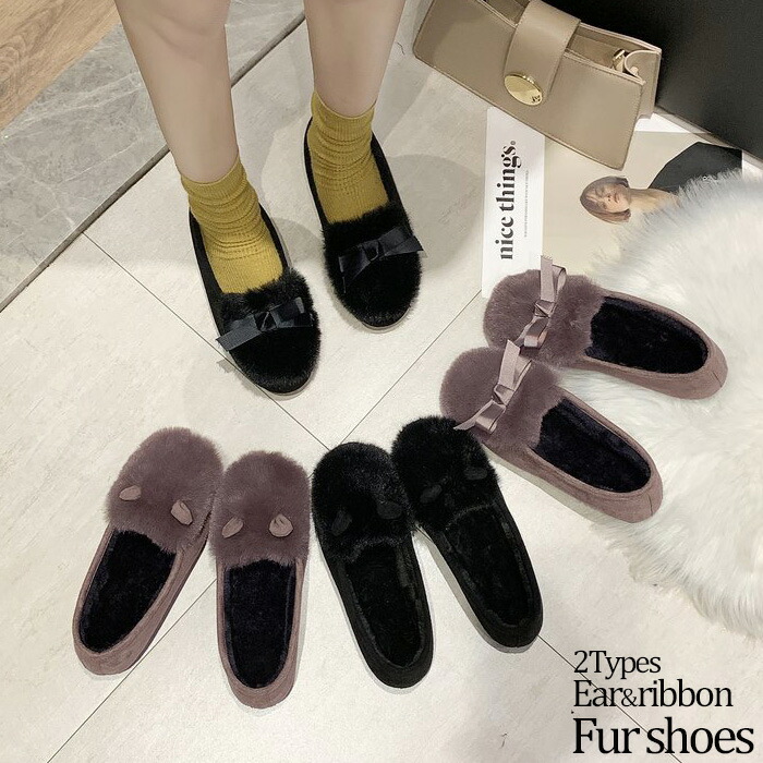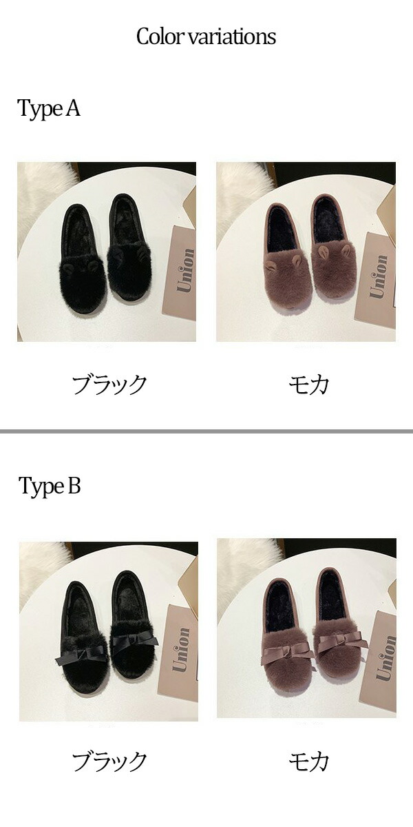 1A14,15 裏起毛リボン&うさ耳フ レディース靴 モカシン 続々登場 35 36 37 38 39 40 タイプAブラック タイプAモカ タイプBブラック タイプBモカ