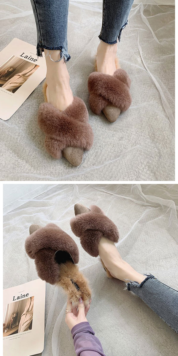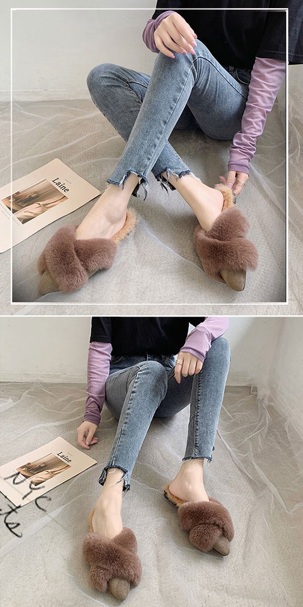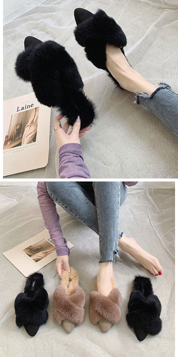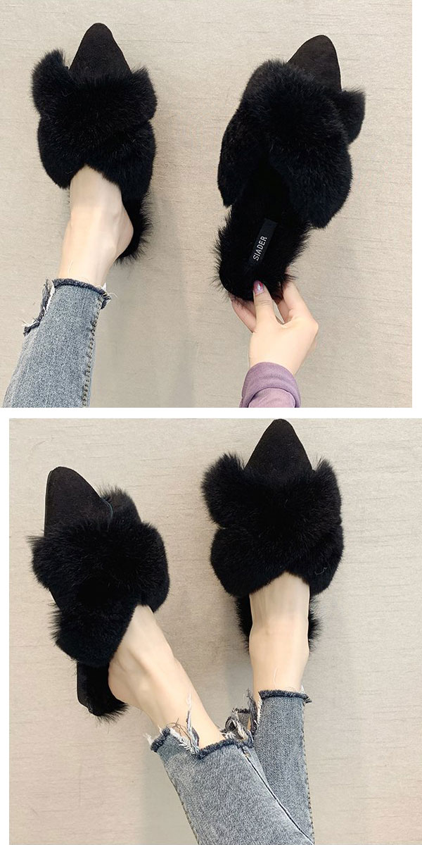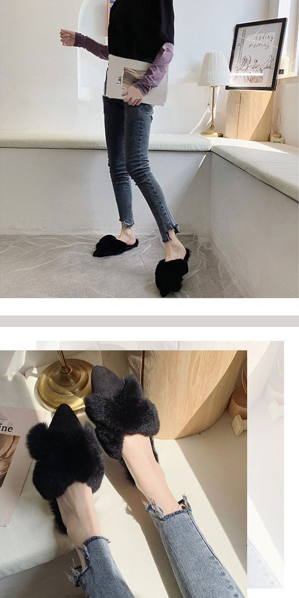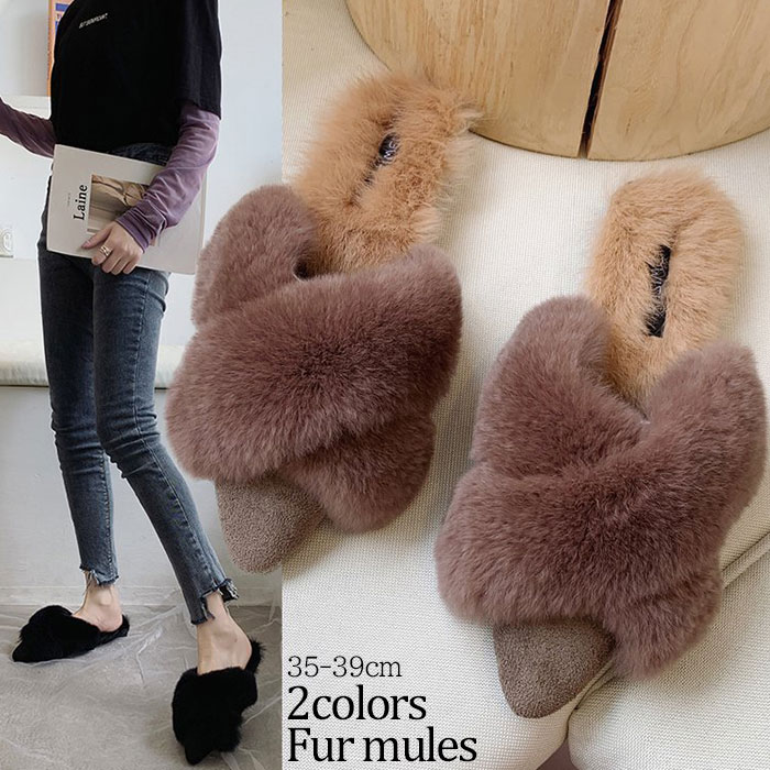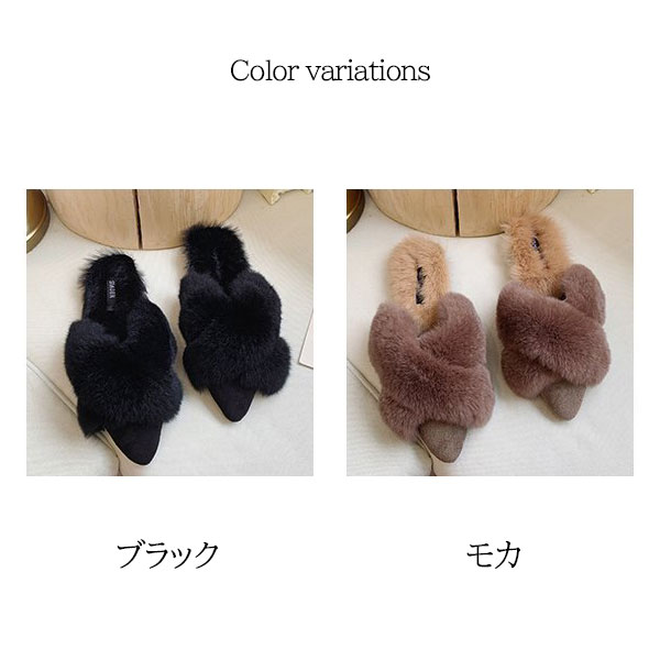 1A14 あったかリアルラビットファー レディース靴 ミュール 通販 35 36 37 38 39 ブラック モカ