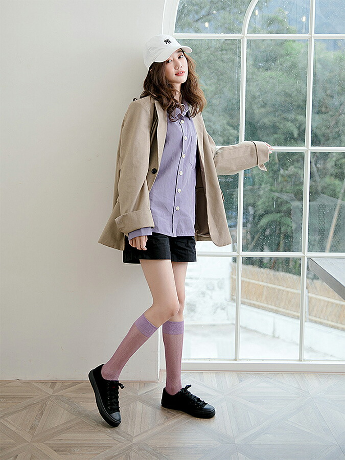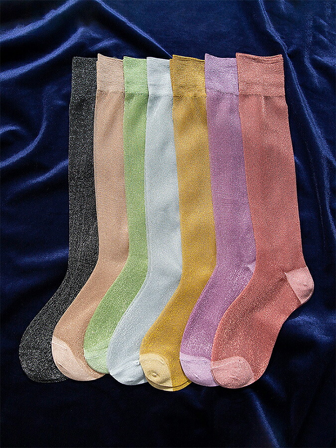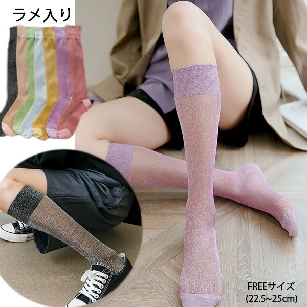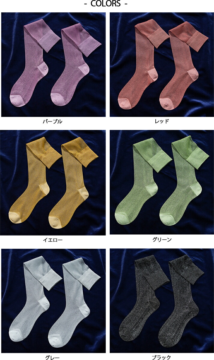 1B8 ラメ入りリブクルーソックス 2 インナー 下着 ナイトウエア お得なセール パープル レッド イエロー グリーン グレー ブラック