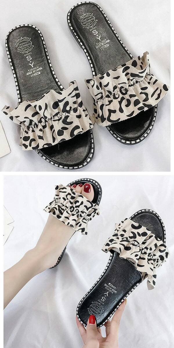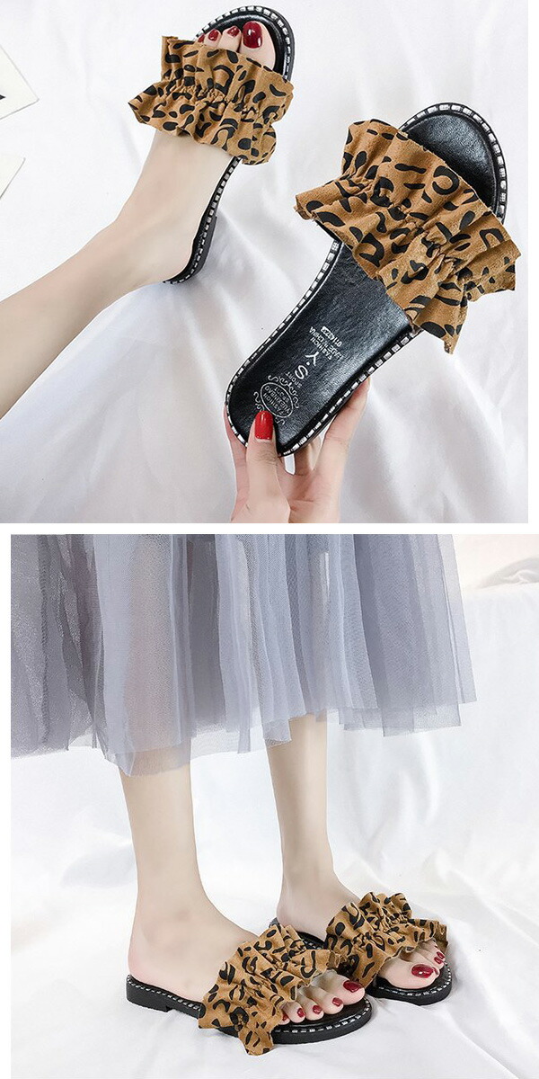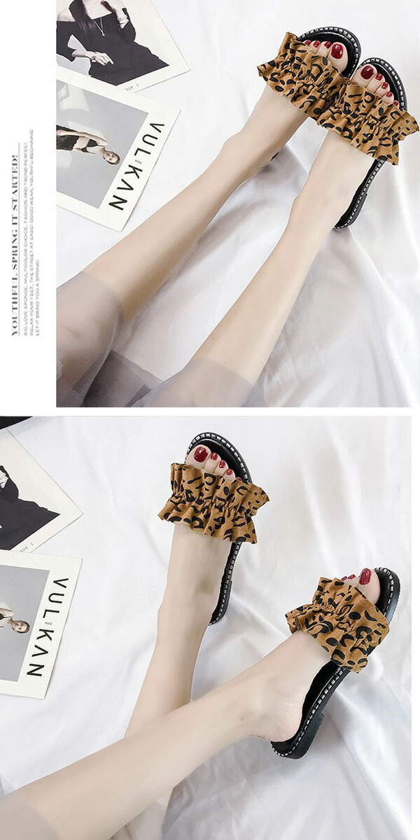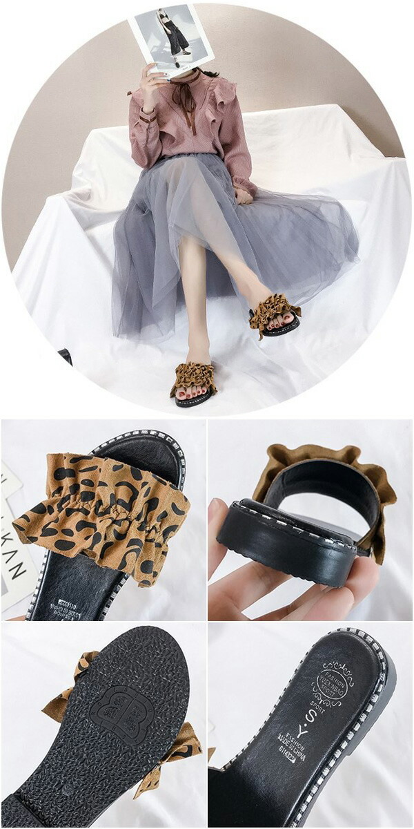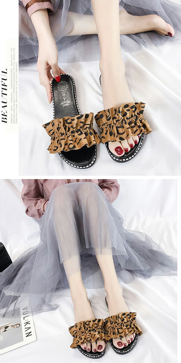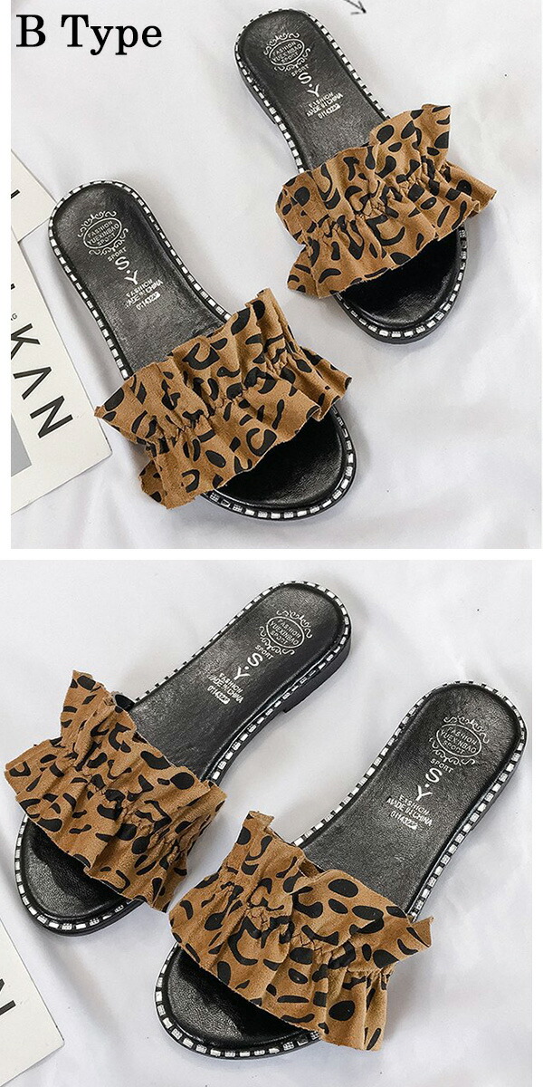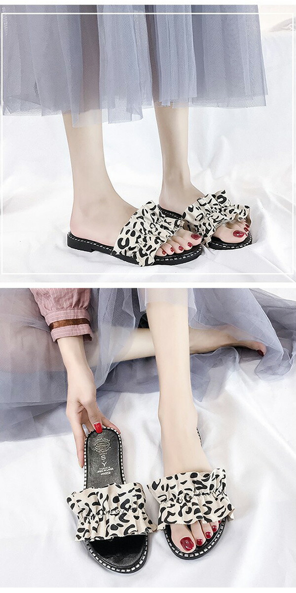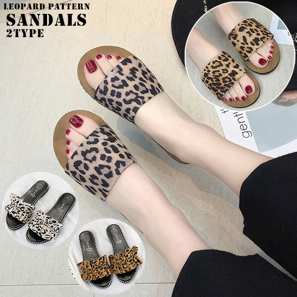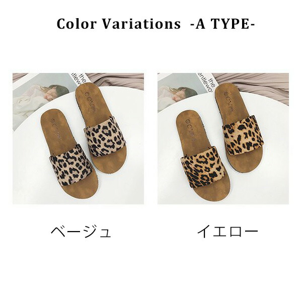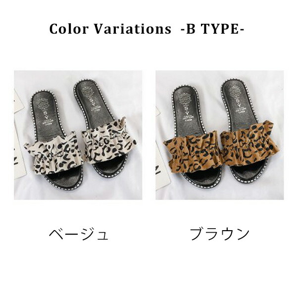 1A20 2タイプ ヒョウ柄 スウェー レディース靴 サンダル ビーチサンダル 豊富な品揃え 37 38 39 40 Aタイプ ベージュ Aタイプ イエロー Bタイプ(フリル)ベージュ Bタイプ(フリル)ブラウン