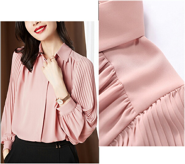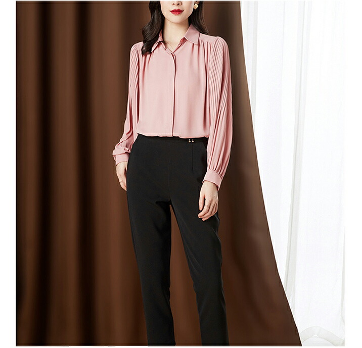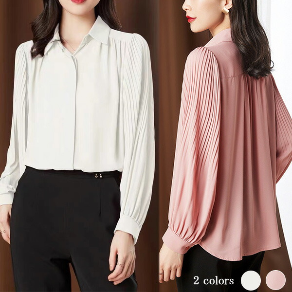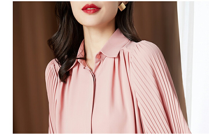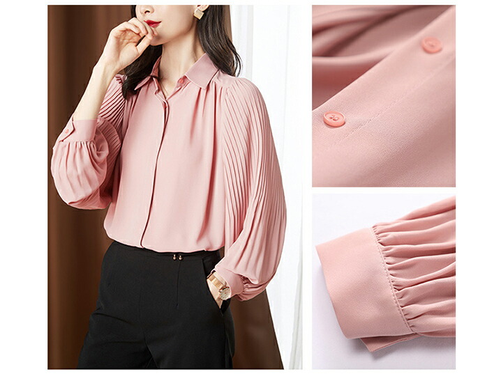 2A1 プリーツ袖 ブラウス トップス トップス シャツ ブラウス 割引 S M L XL ピンク ホワイト