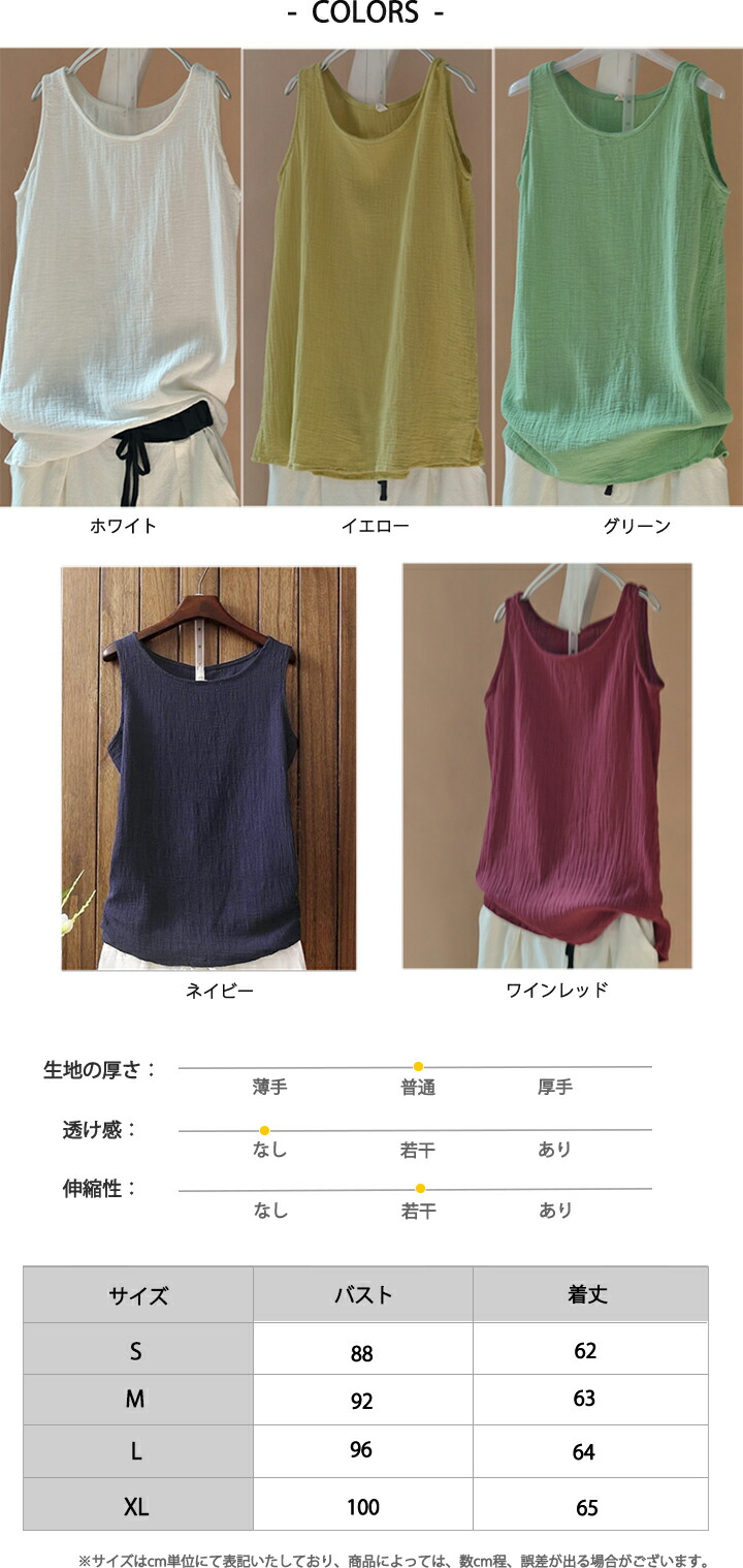 2C4 綿麻 タンクトップ リネンタン レディースファッション お得なセール M L XL XXL ホワイト イエロー グリーン ネイビー ワインレッド