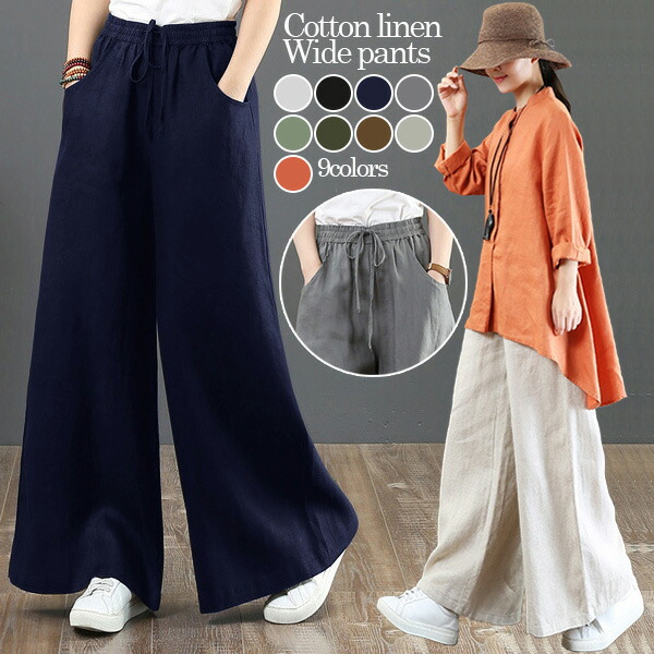 2B13 コットンリネン ワイドパンツ レディースファッション 割引 M L XL ブラック ホワイト ネイビー ベージュ グリーン ブラウン グレー