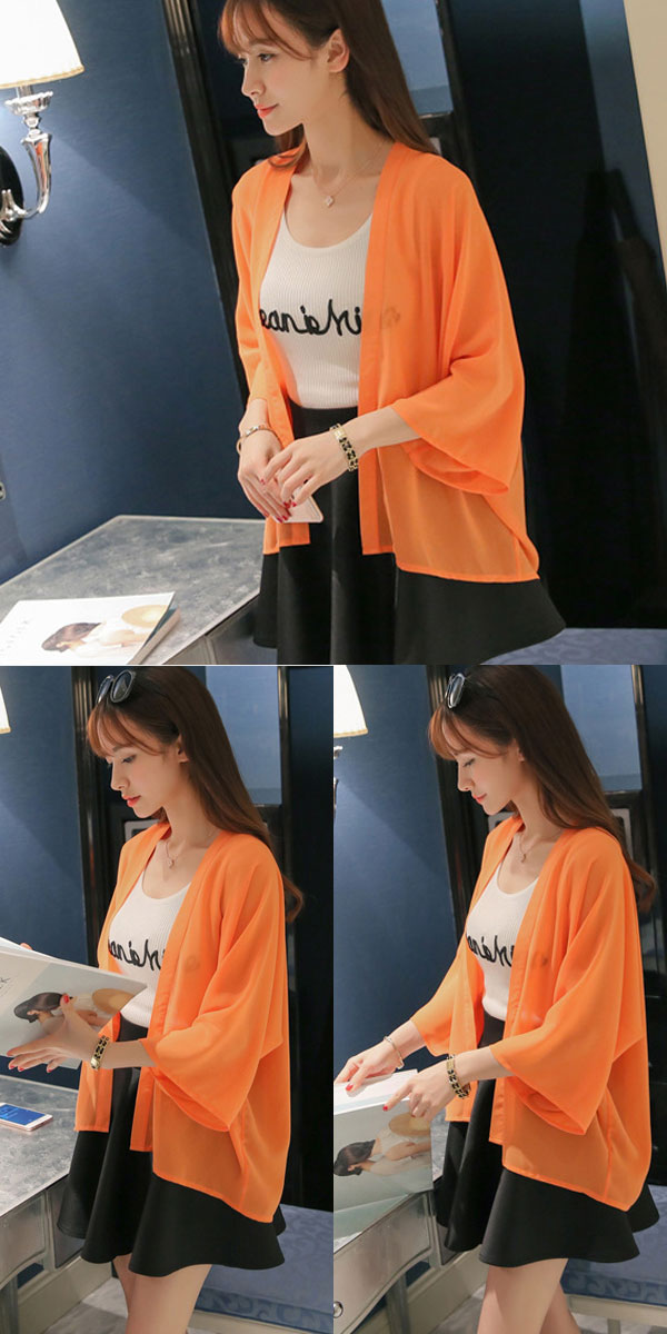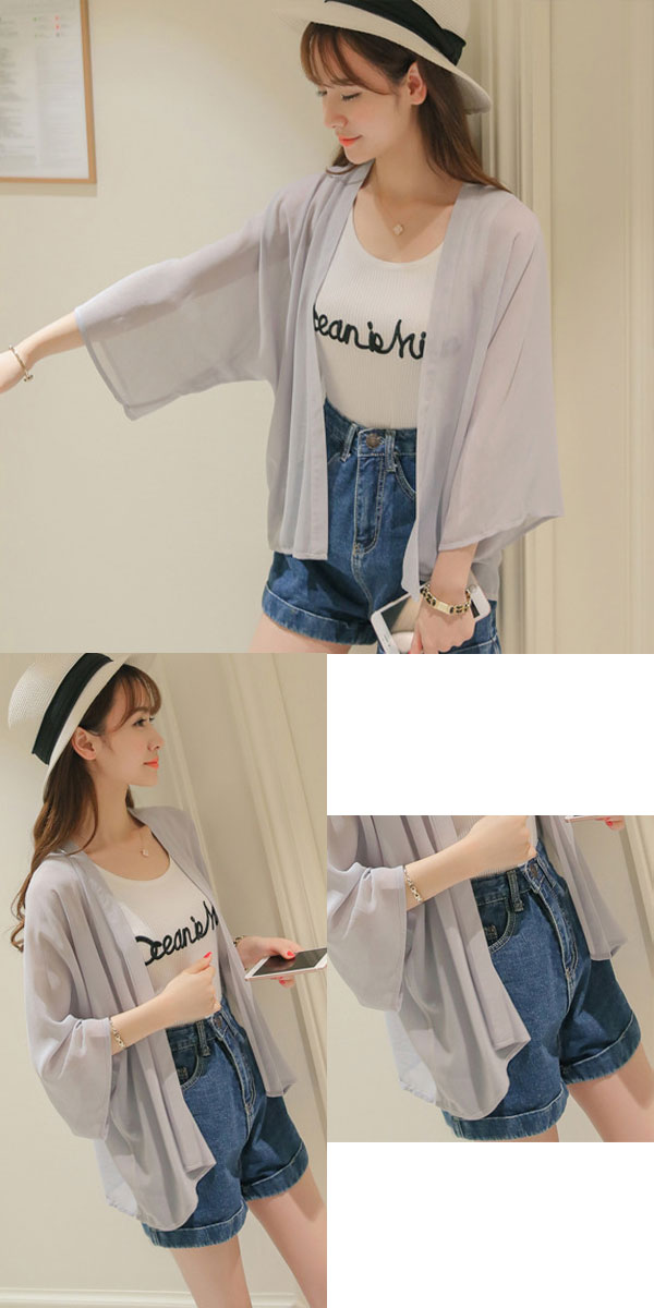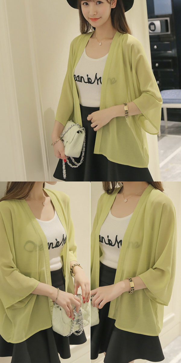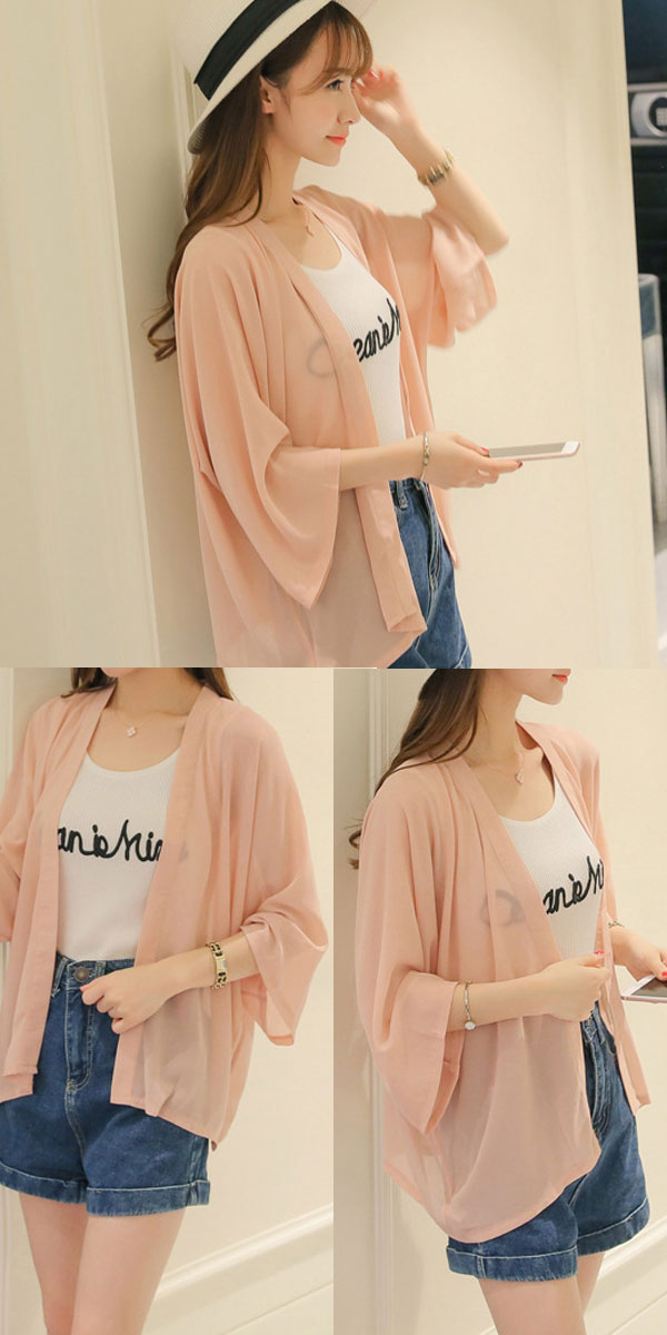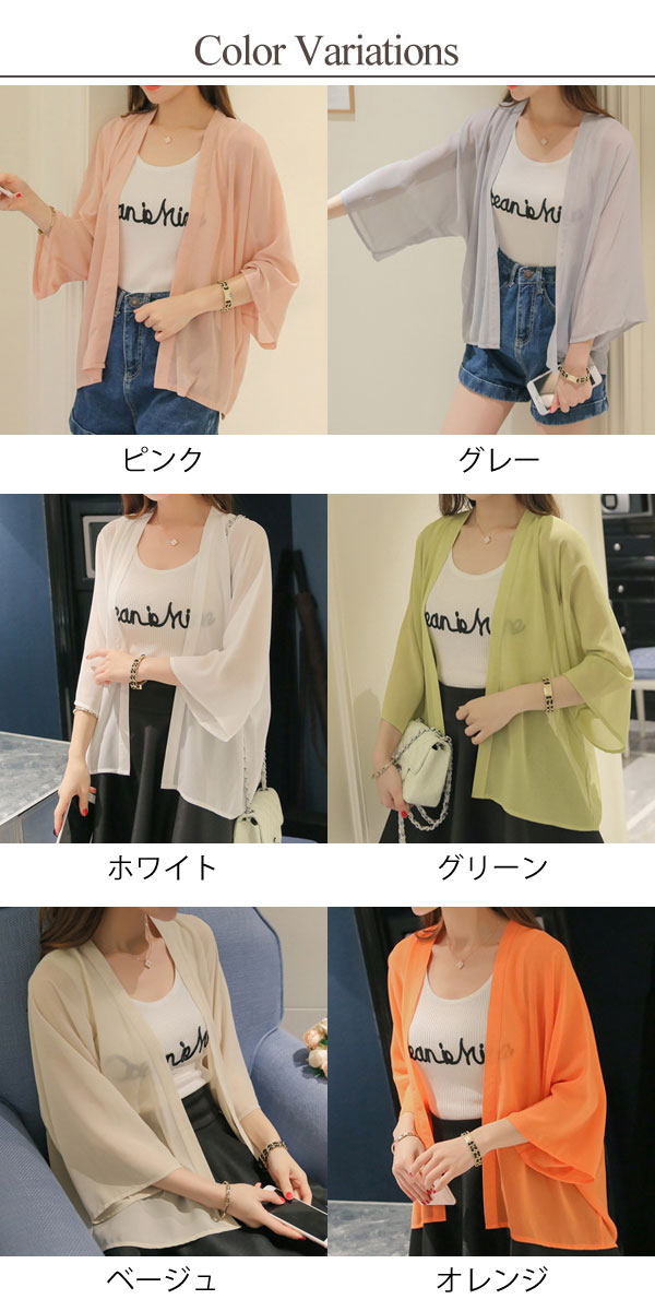 1B25 シースルーシフォンカーディガ レディースファッション お買い得 ピンク グレー ホワイト グリーン ベージュ オレンジ