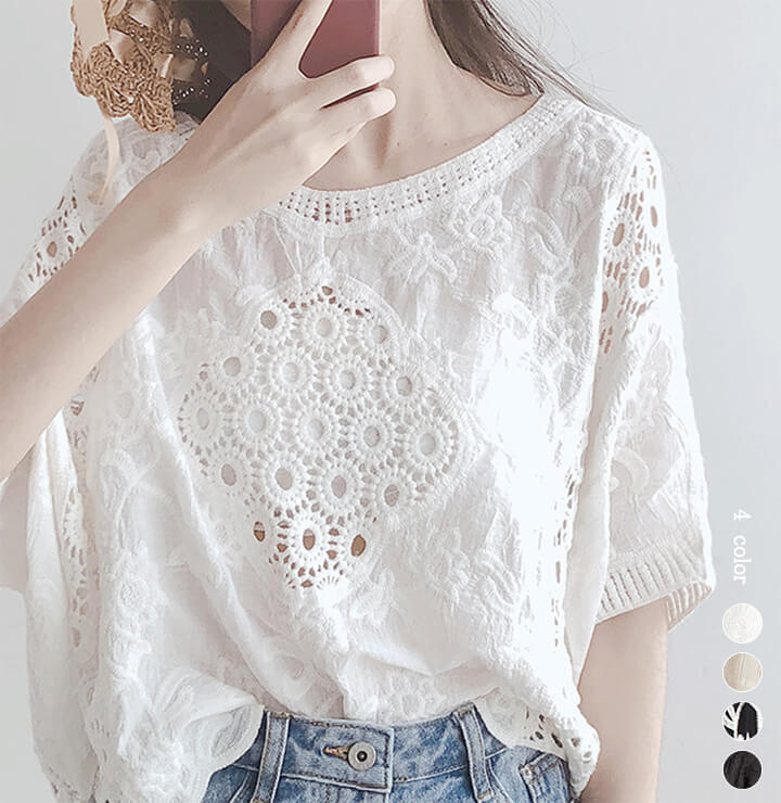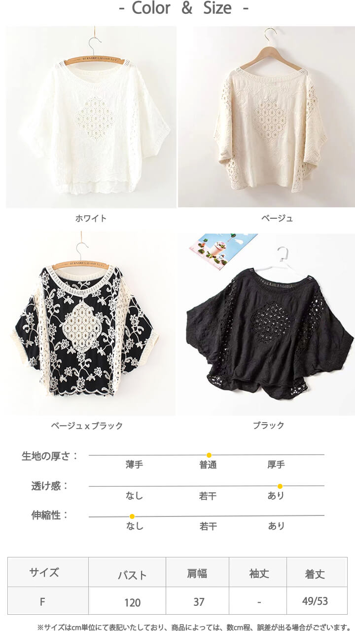 2A27 カット刺繍ドルマンスリーブカ トップス Tシャツ カットソー 特集 ホワイト ベージュ ブラックxベージュ ブラック