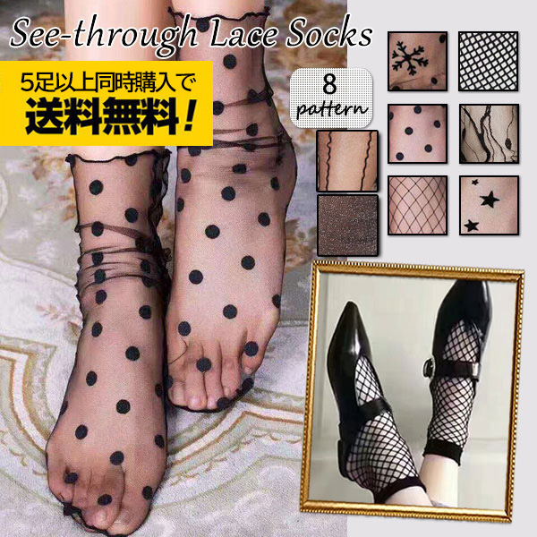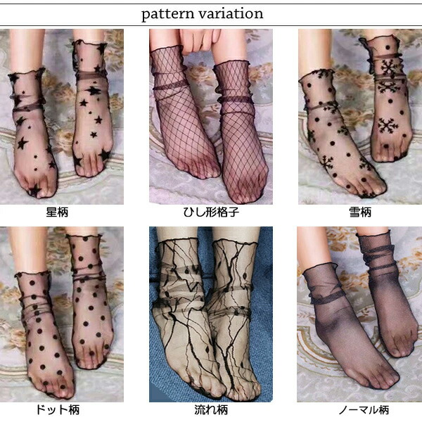 シースルーレースソックス ショートソッ インナー 下着 ナイトウエア お得なセール 星柄 ひし形格子柄 雪柄 ドット柄 流れ柄 ノーマル柄 ストライプ柄 シルバーラメ