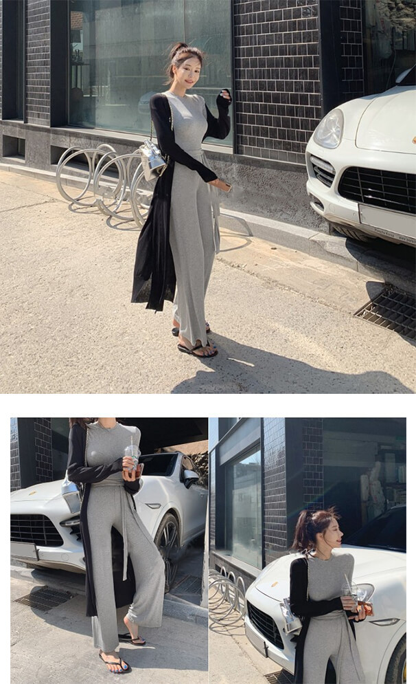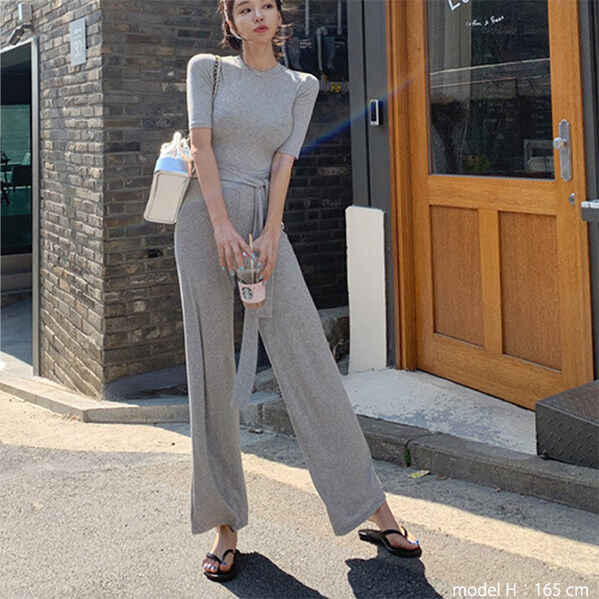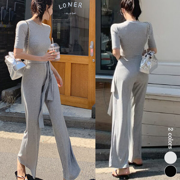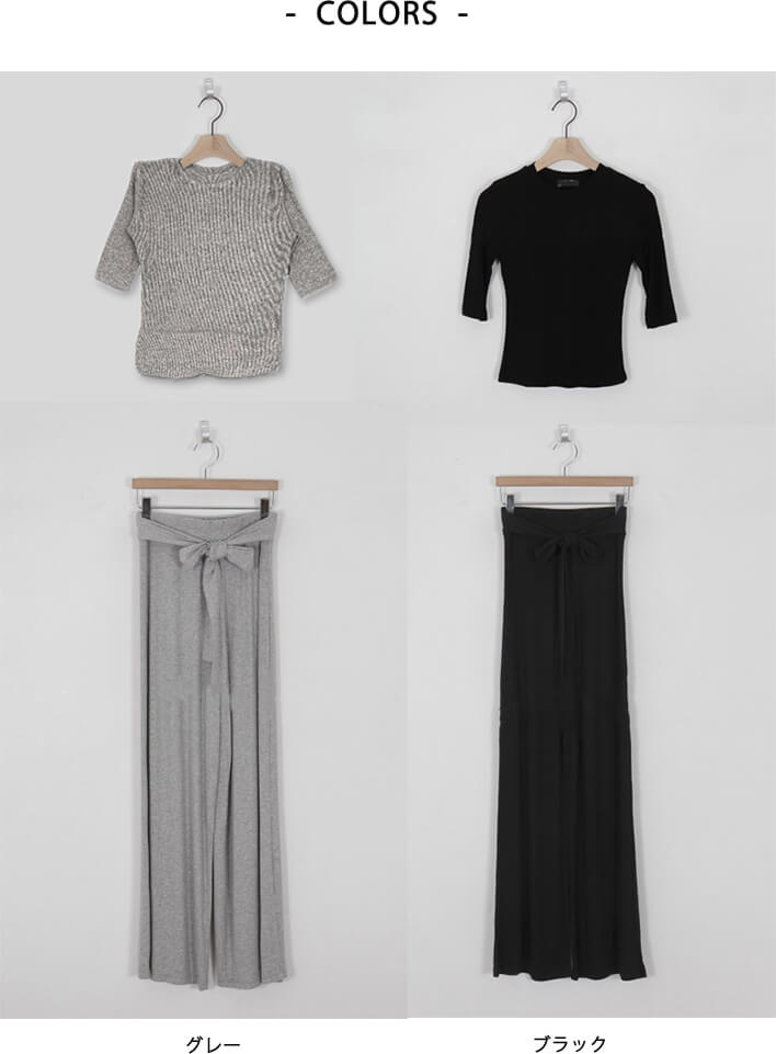2C10 ニット半袖&パンツ2点セット スーツ セットアップ パンツスーツ 人気 グレー ブラック