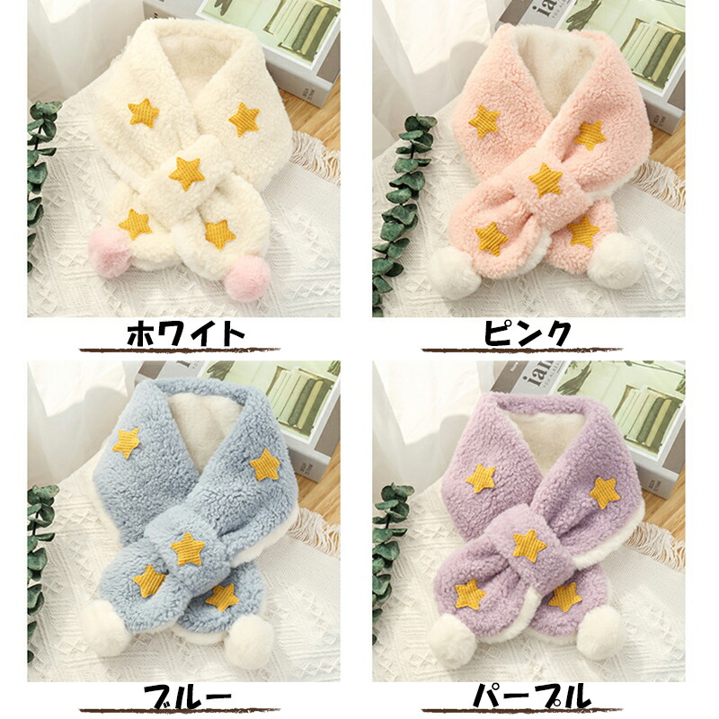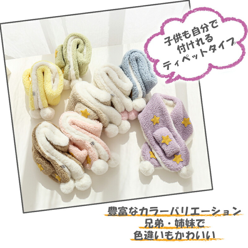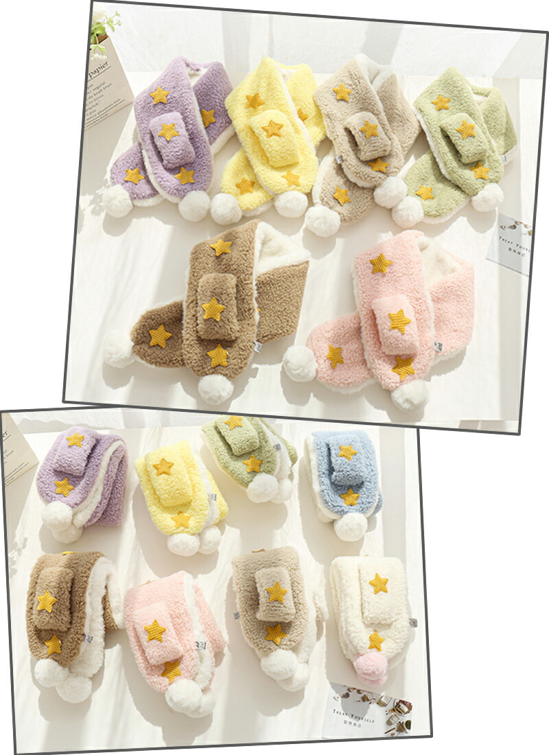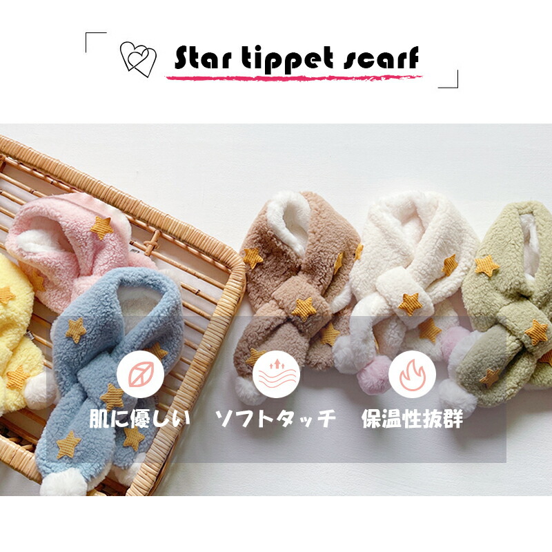 3A43キッズマフラー 星柄ティペット キッズ ベビー マタニティ 人気 ホワイト ピンク ブルー パープル ベージュ ブラウン グリーン イエロー