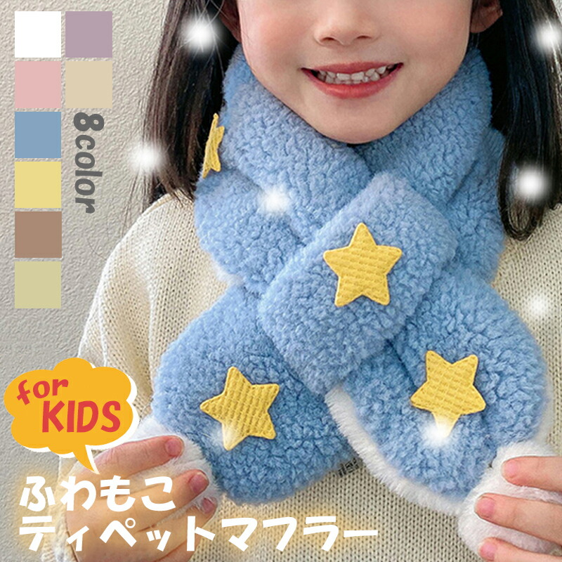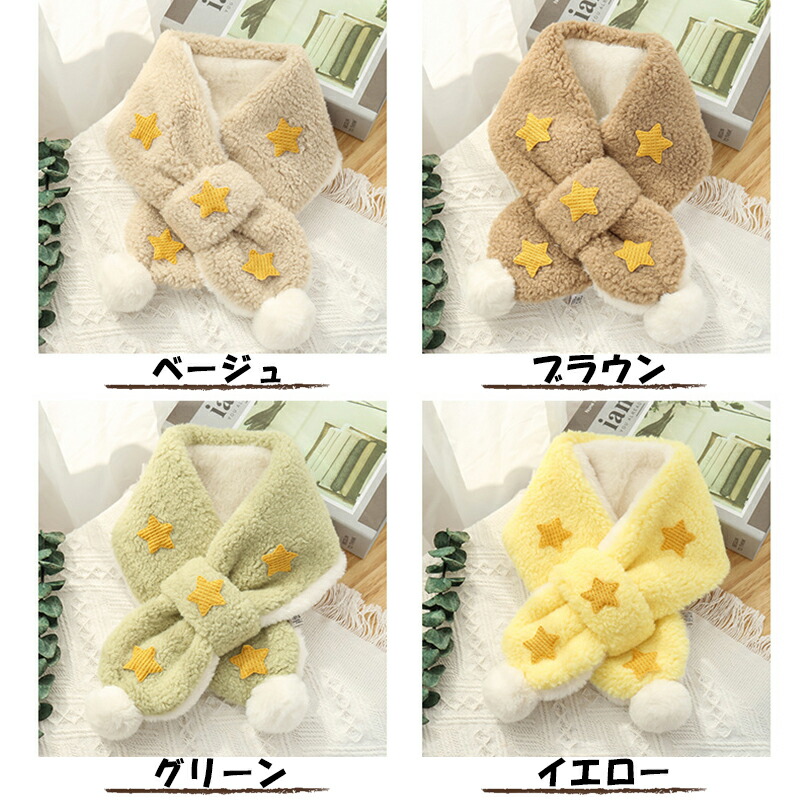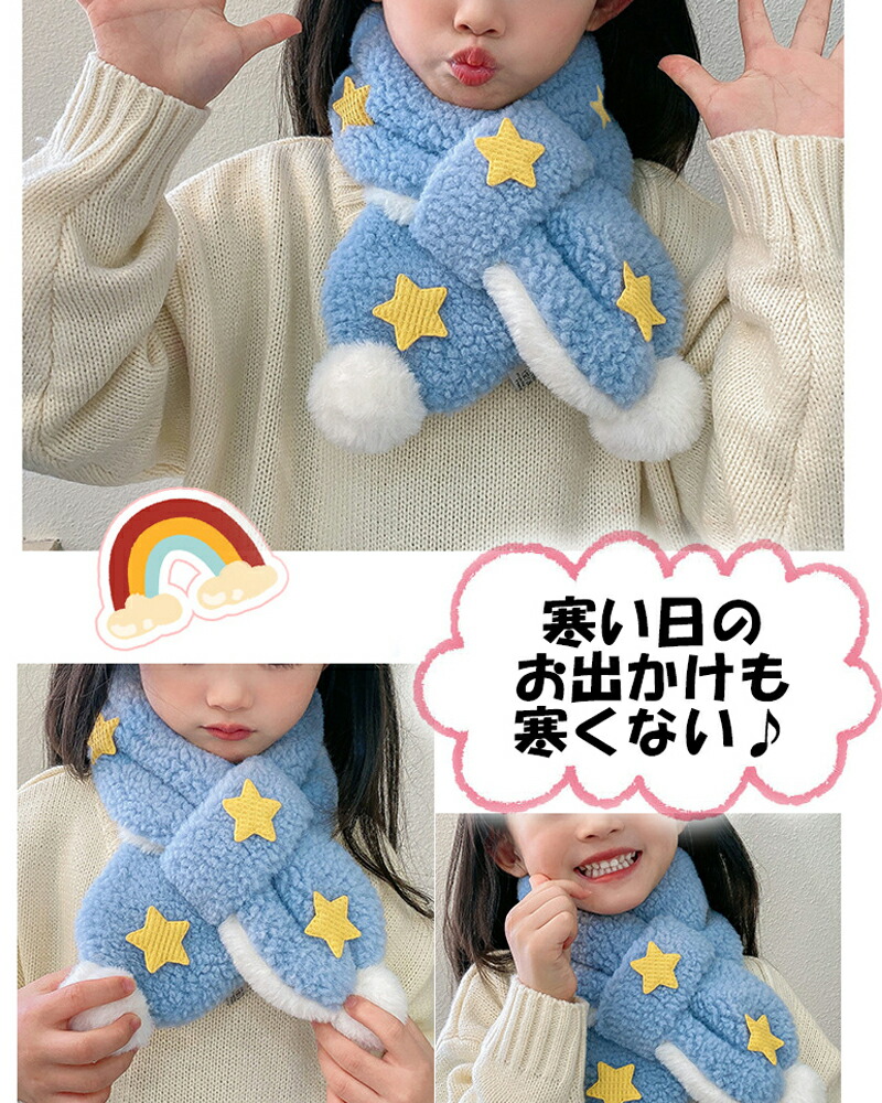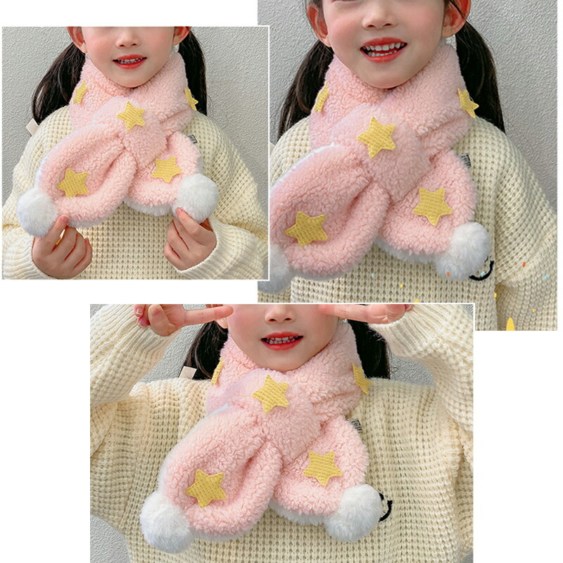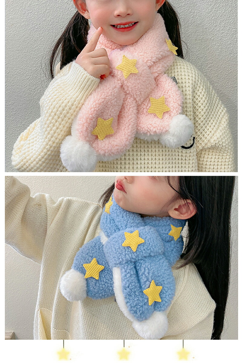 3A43キッズマフラー 星柄ティペット キッズ ベビー マタニティ 人気 ホワイト ピンク ブルー パープル ベージュ ブラウン グリーン イエロー