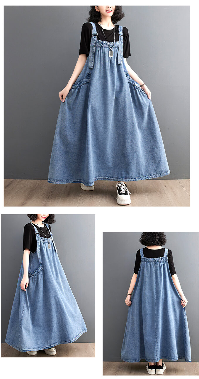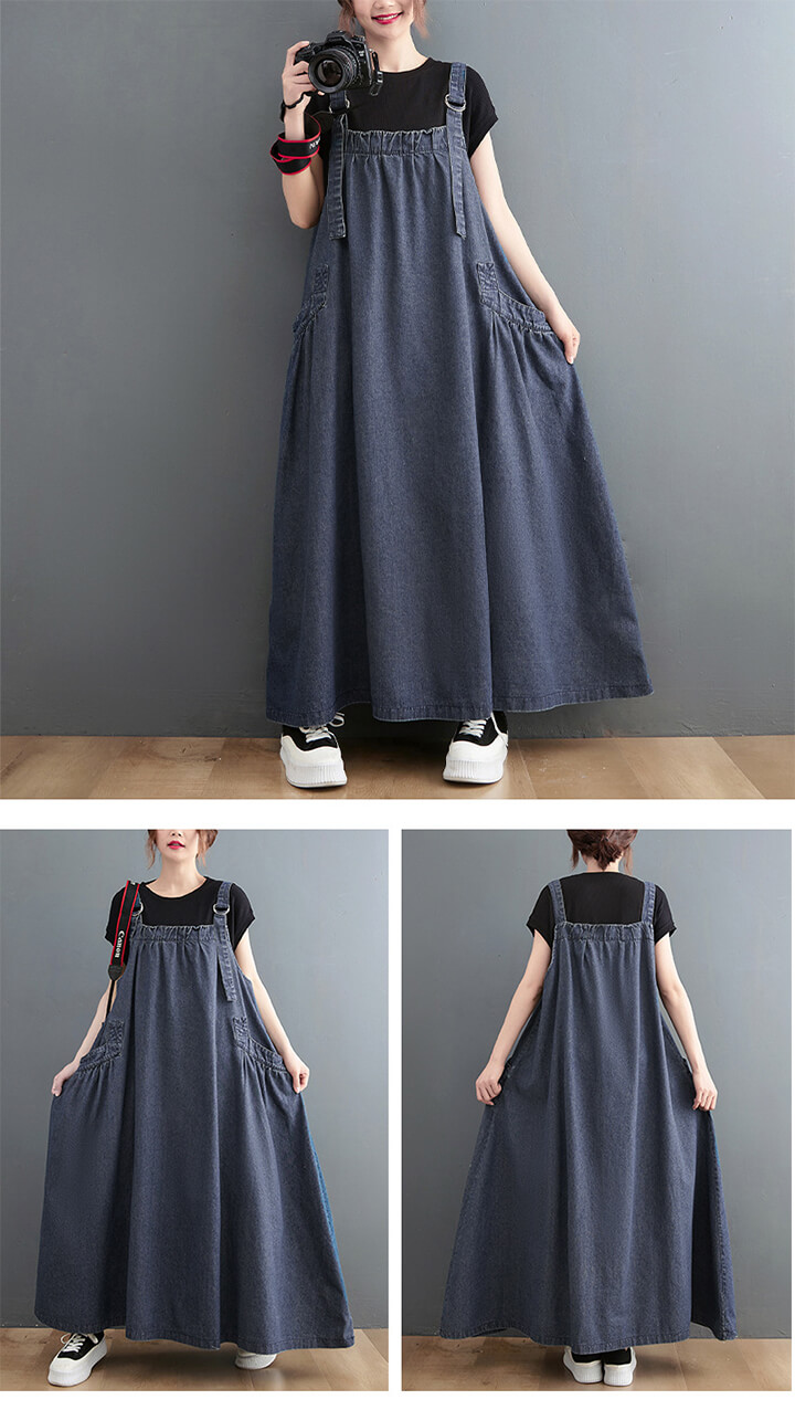 2A34 デニムオーバーオール レディ ワンピース 42%Off M L XL ブルー インディゴ